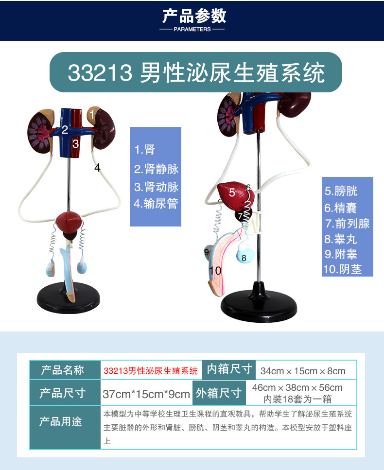 男性女性泌尿生殖系统模型教具 生物教学演示用具 医学医院教学