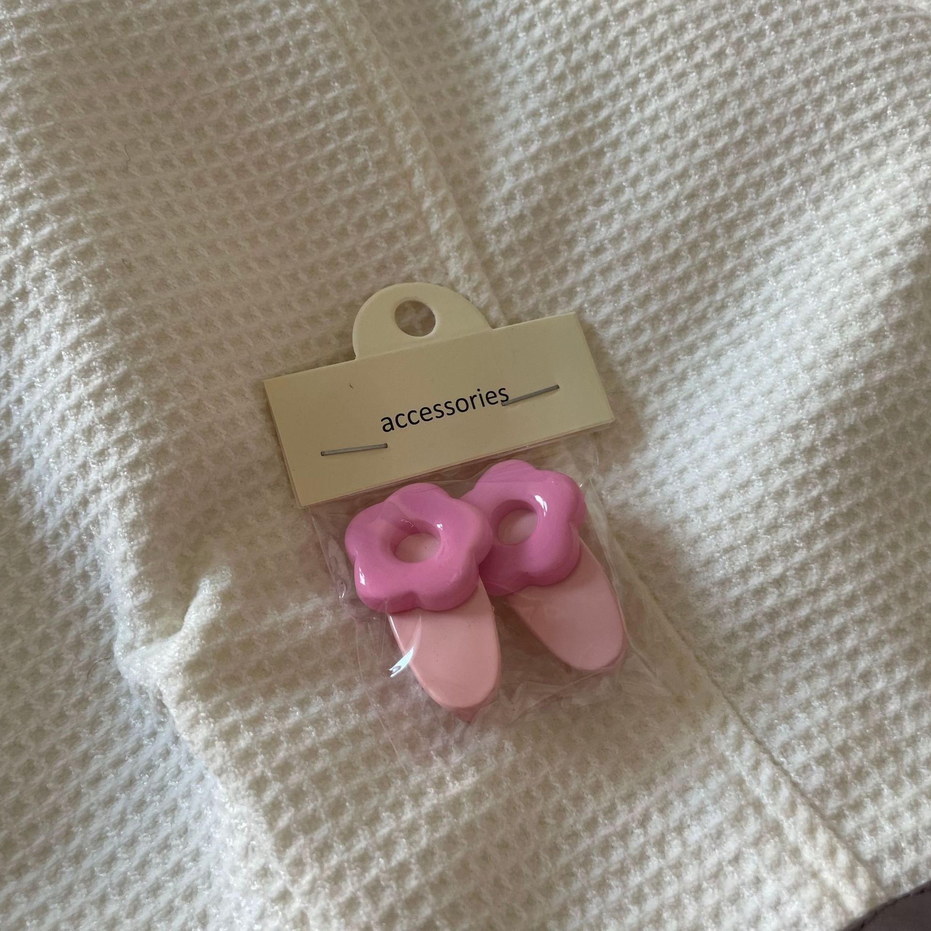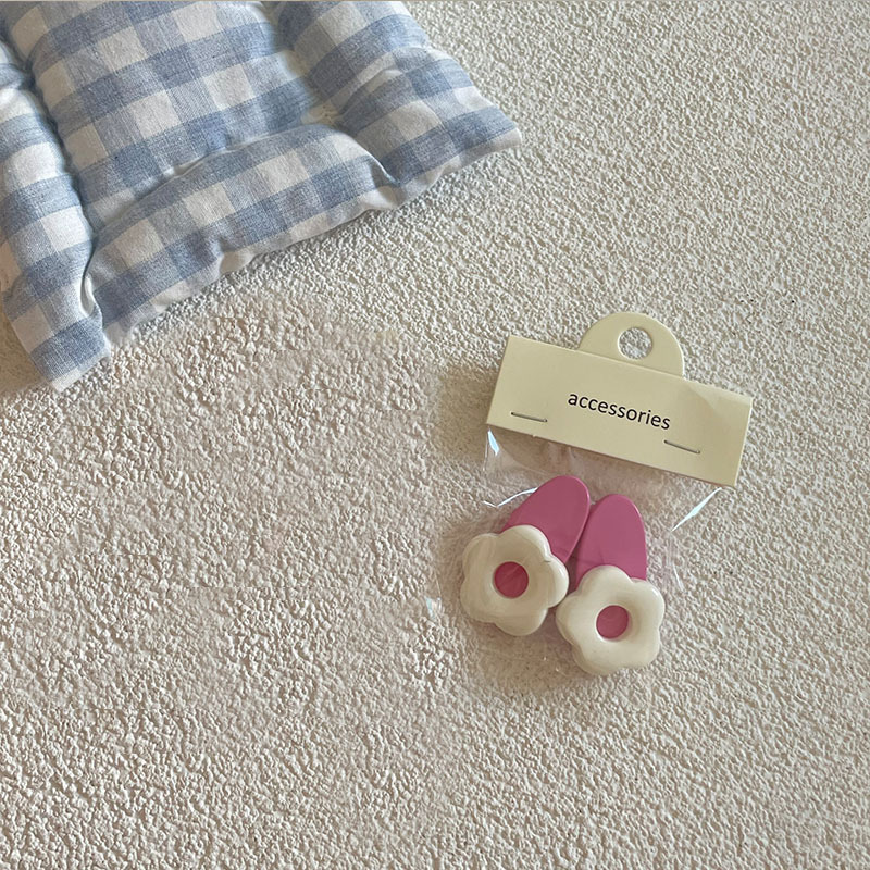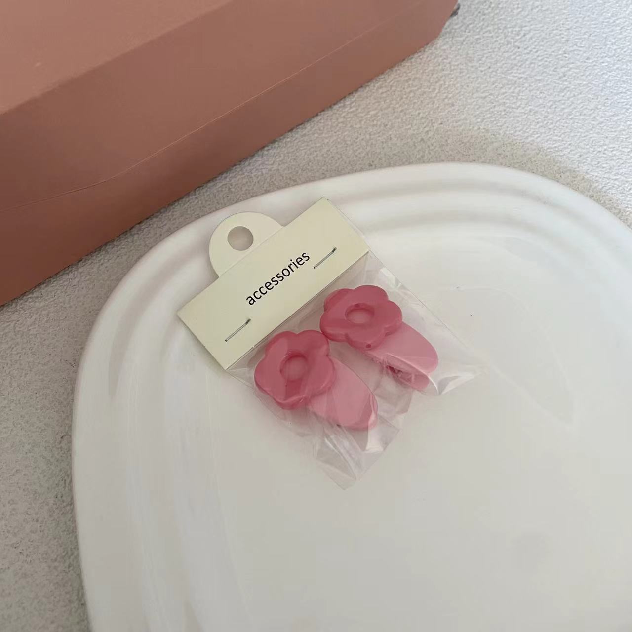 2个装~韩国INS彩色马卡龙粉色花朵碎发边夹鸭嘴夹发夹发饰头饰