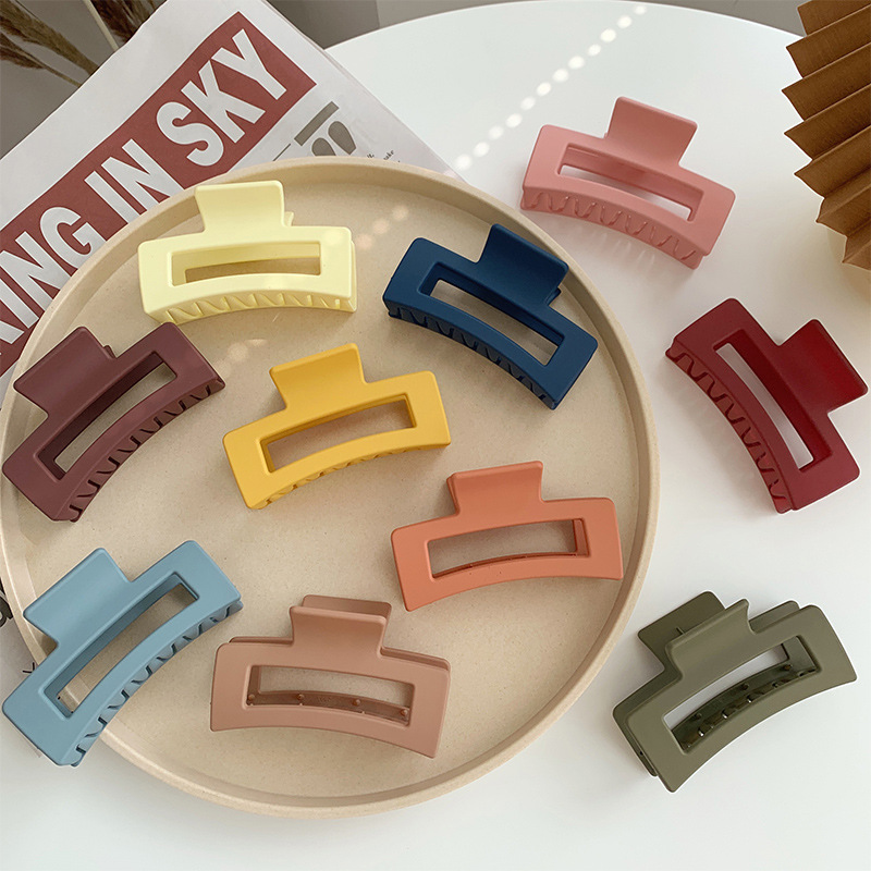 方形抓夹鲨鱼夹盘发抓发磨砂彩色大发夹后脑勺夹子头饰糖果色夹