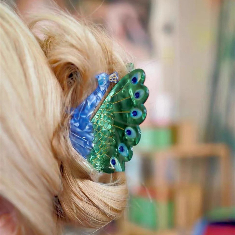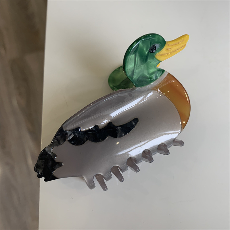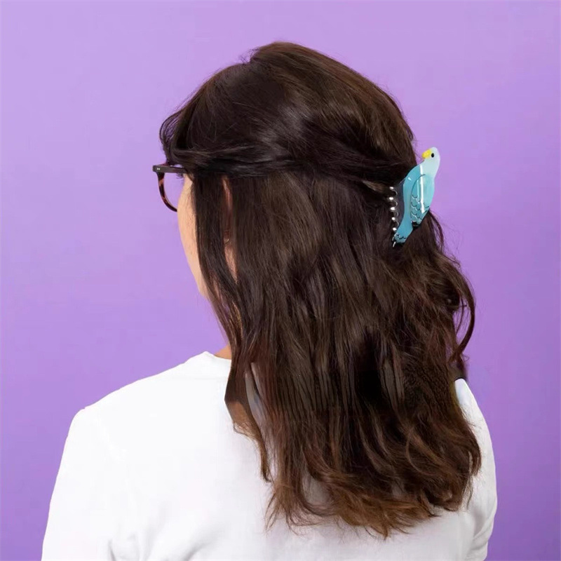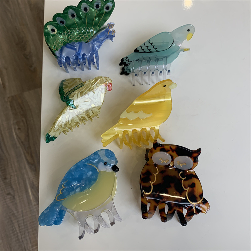 个性小众设计感法式小鸟发卡拼色动物鲨鱼夹刘海孔雀鹦鹉发抓夹