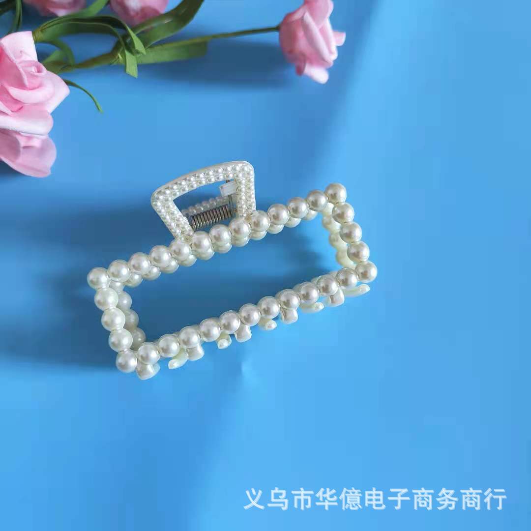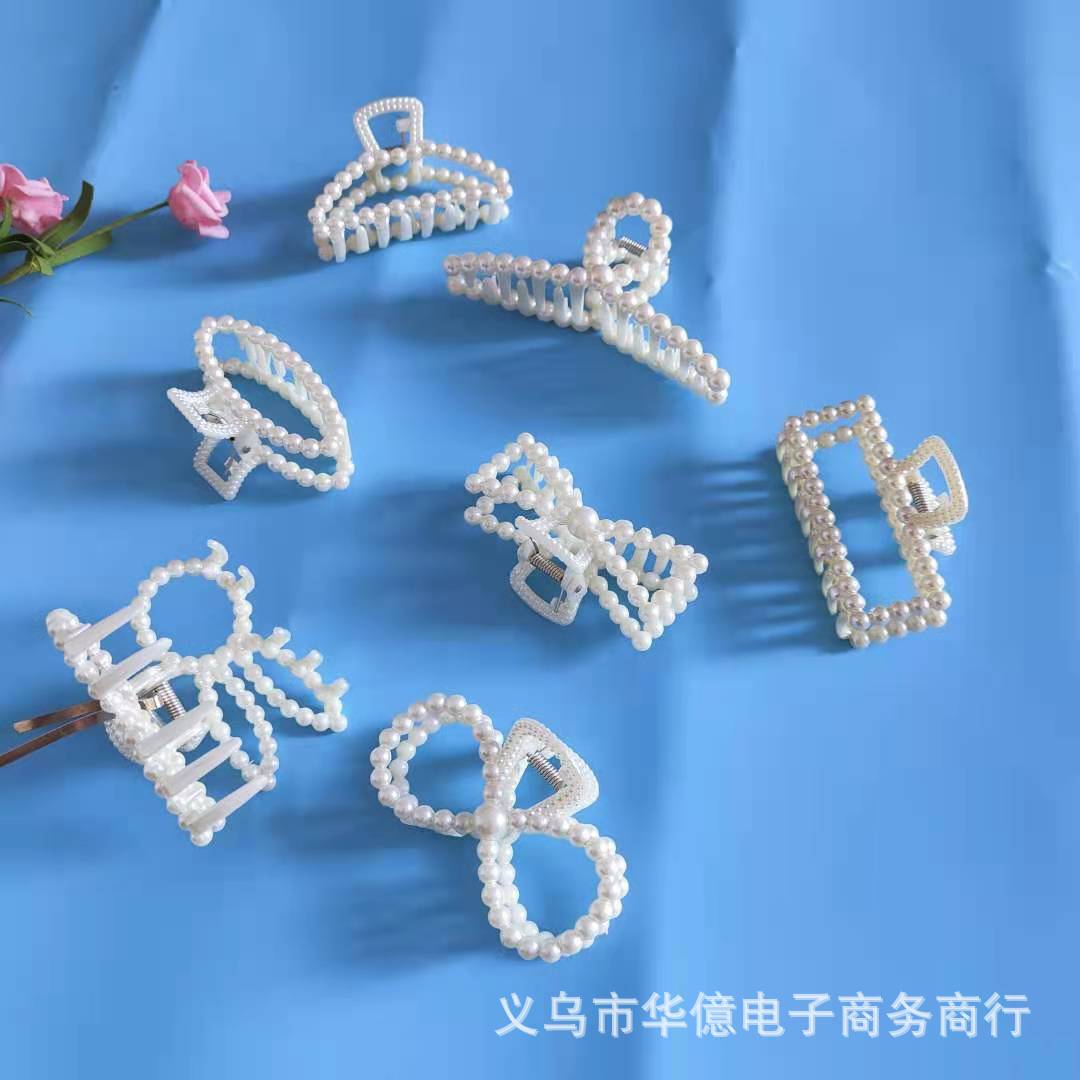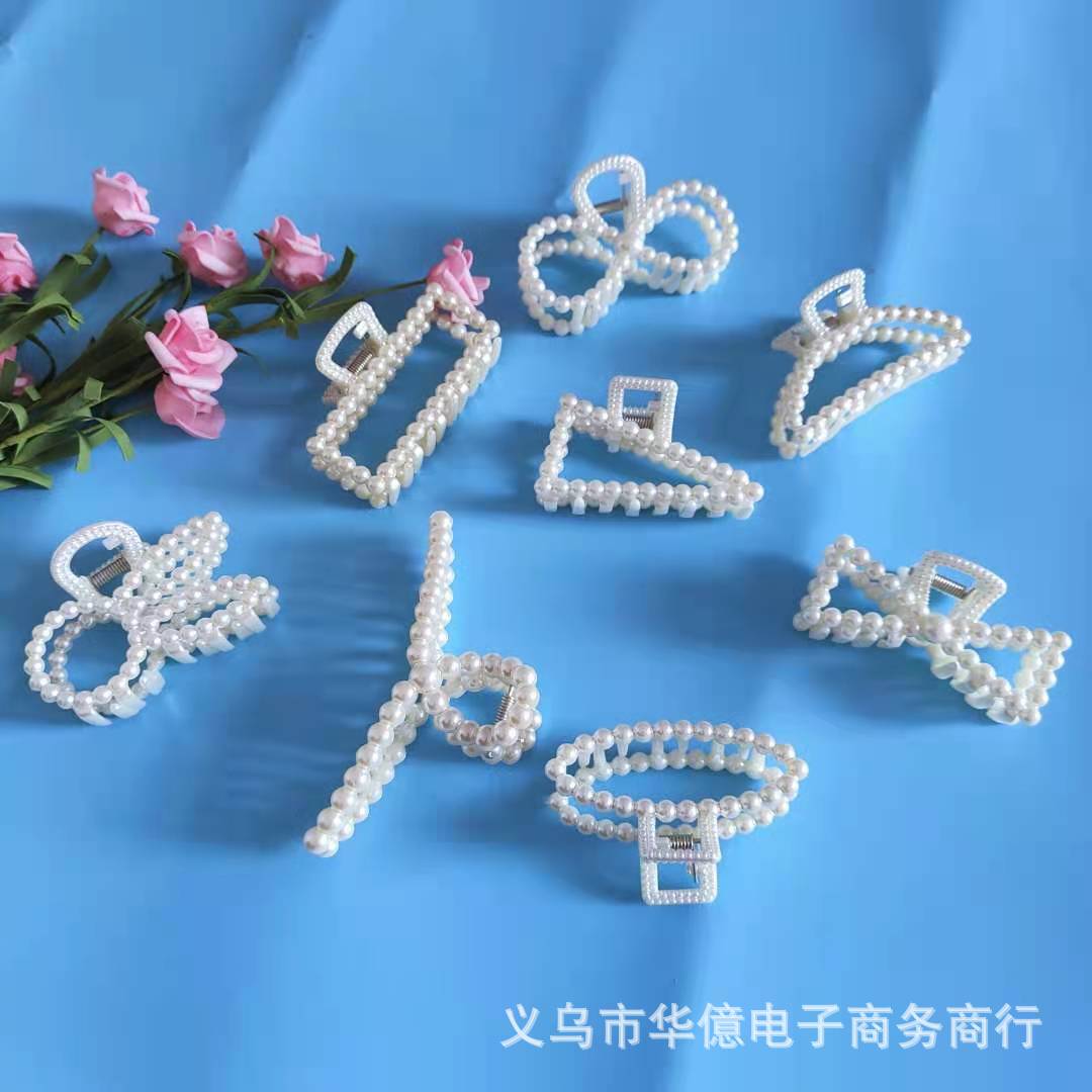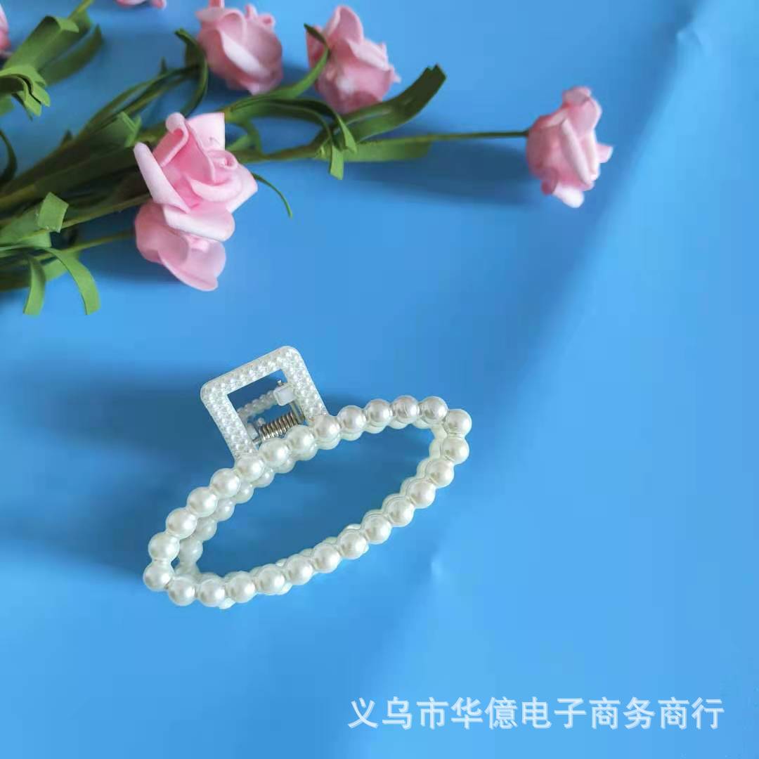 韩国风珍珠发夹抓夹女大号气质洗澡夹子发抓几何交叉 发卡鲨鱼夹