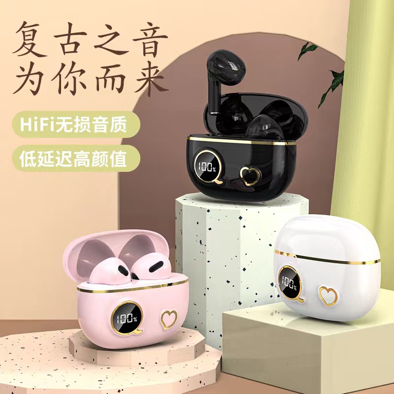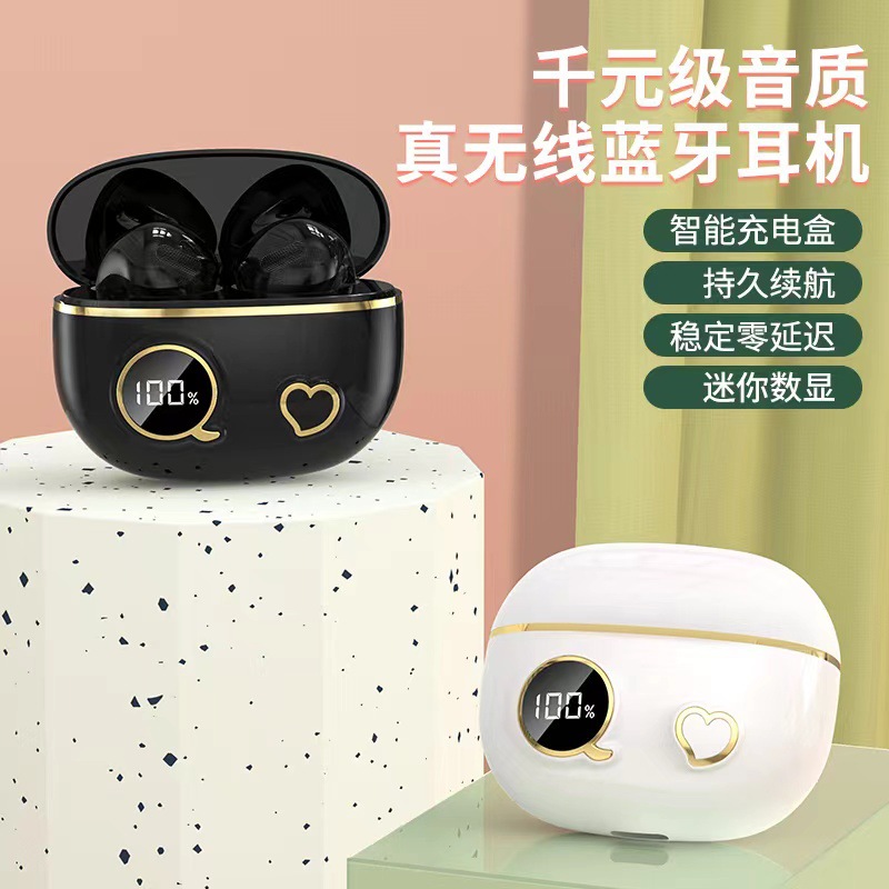 新款数显蓝牙耳机5.3半入耳式立体音质15米蓝牙耳机
