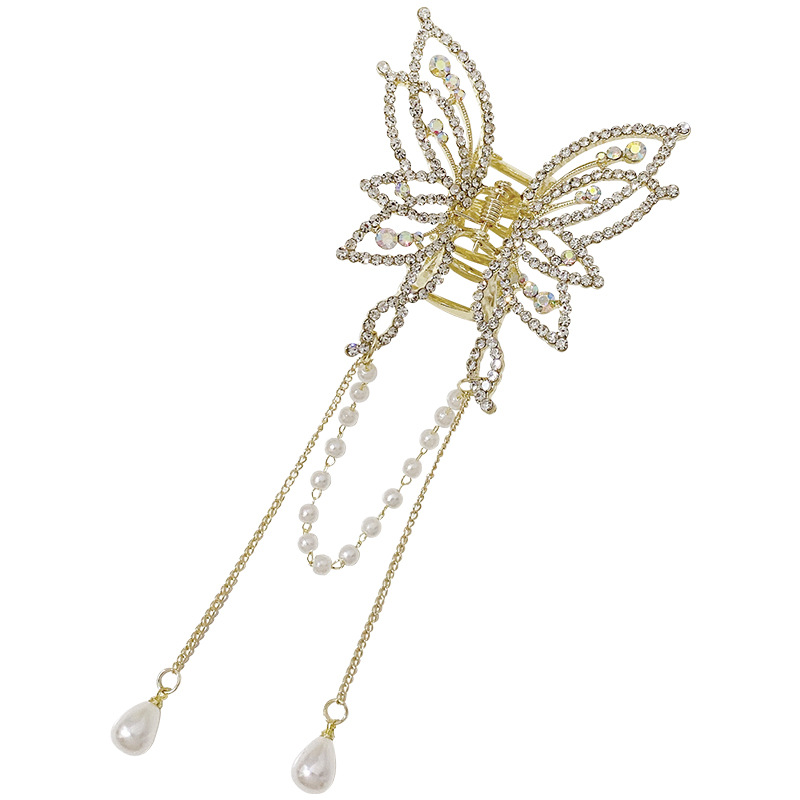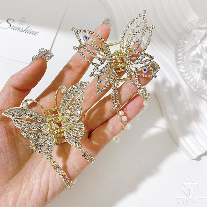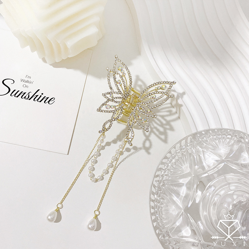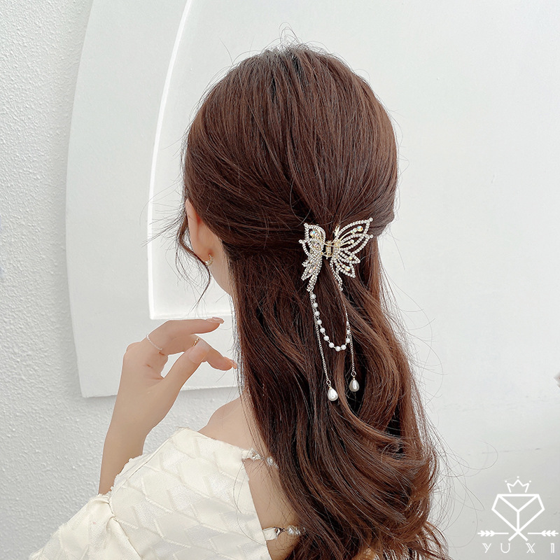 新款珍珠流苏蝴蝶发夹女抓夹小号鲨鱼夹头饰发卡