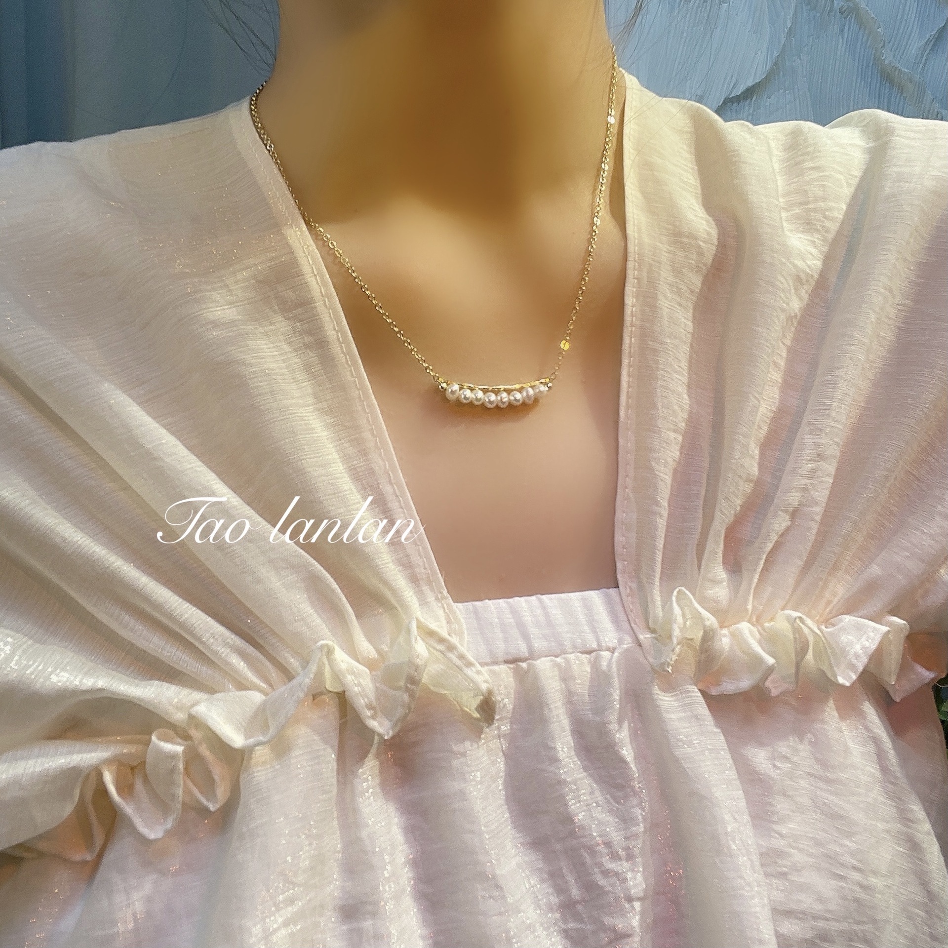 韩国复古珍珠项链女小众设计感网红轻奢冷淡风锁骨链颈链