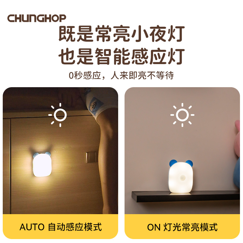 外贸专供智能人体感应无线卡通磁吸设计挂墙灯儿童床头起夜台灯
