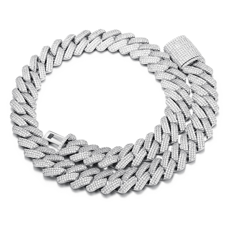 S925纯银高质量三排锆石20MM菱形古巴链欧美男士嘻哈潮流项链饰品