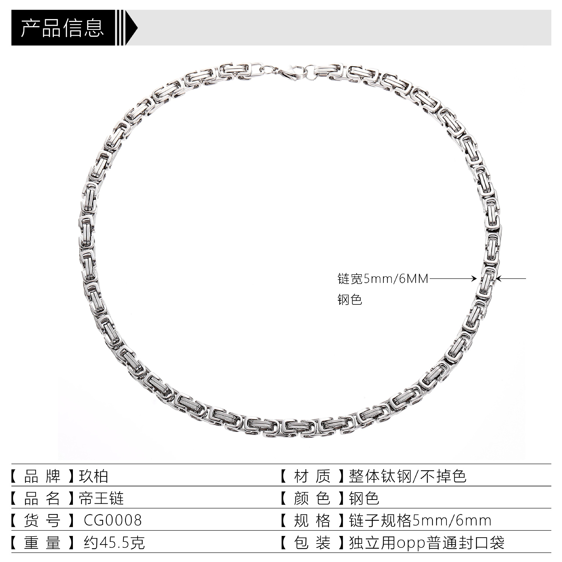 街头百搭潮狂飙高启强同款嘻哈古巴链男生不掉色帝王链钛钢锁骨链