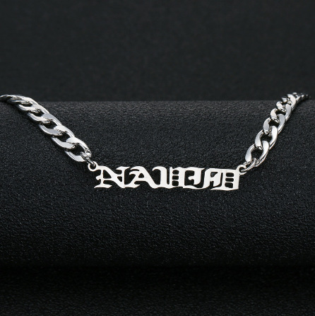马鞭链定 制项链古英文名字女士嘻哈不锈钢吊坠配饰制做钛钢项链