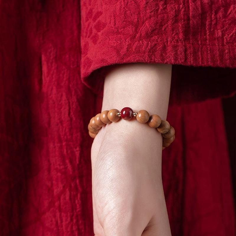 紫金砂朱砂手链桃木简约手串男女本命年文艺饰品设计复古情侣款