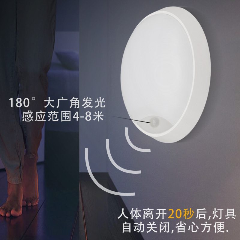 外贸专供led户外壁灯防水阳台走廊楼梯过道灯圆形简约庭院感应灯