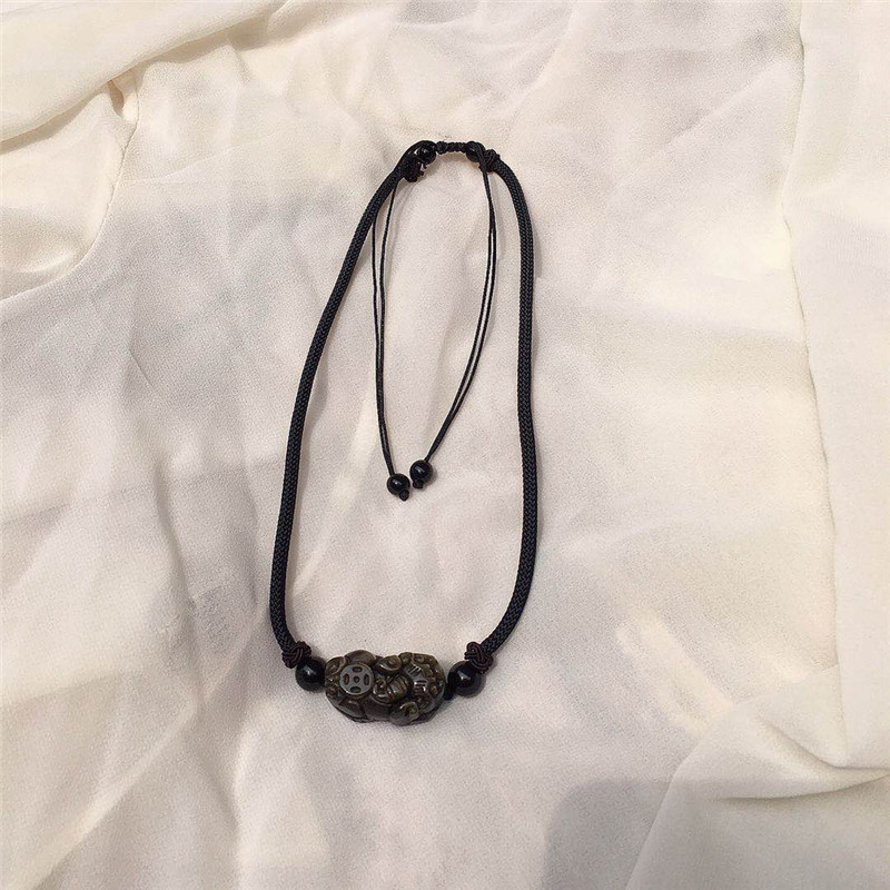 批发彩眼黑曜石情侣貔貅项链颜九同款吊坠男红女锁骨链礼物