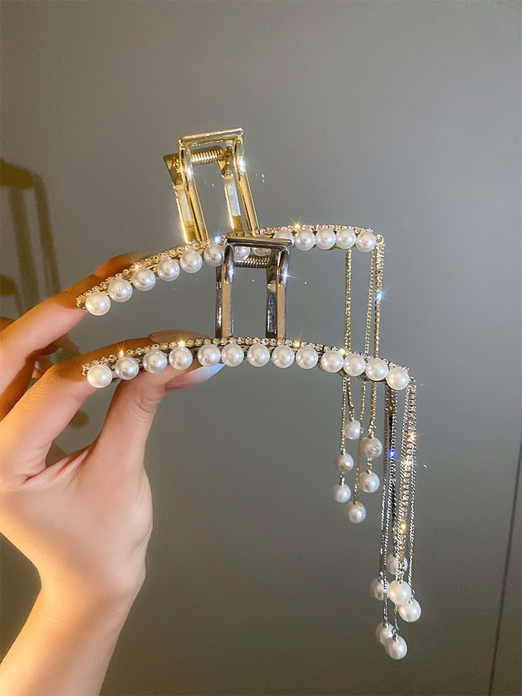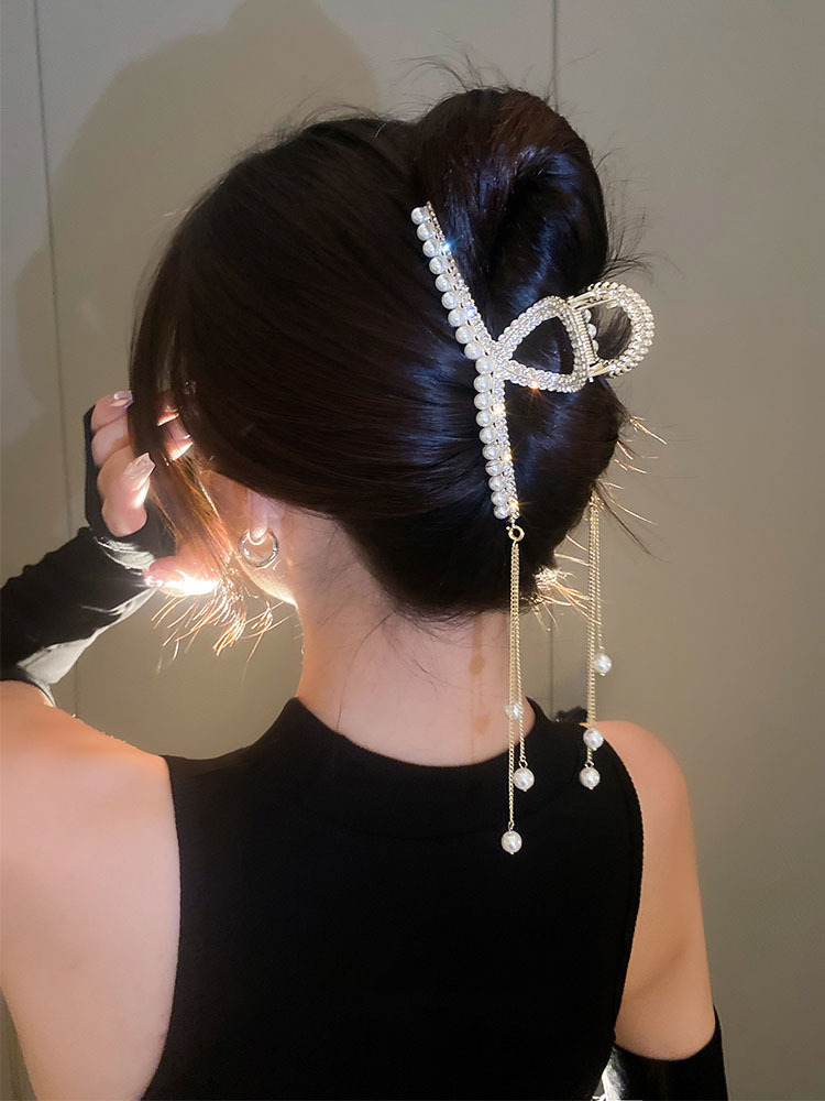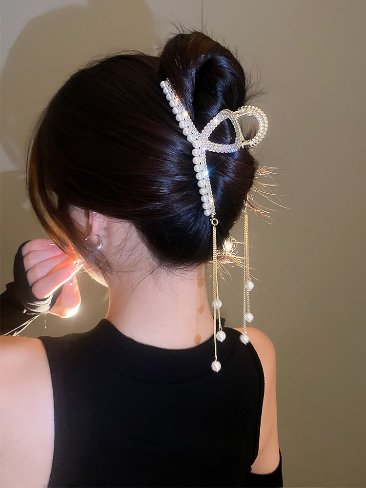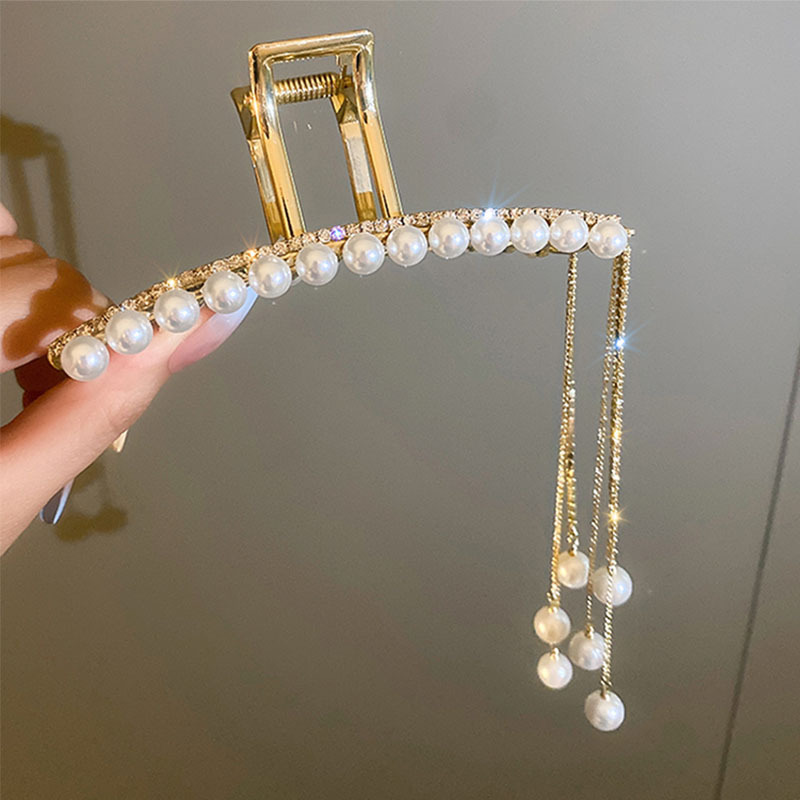 珍珠流苏盘发抓夹女大号发夹鲨鱼夹流苏抓夹年新款