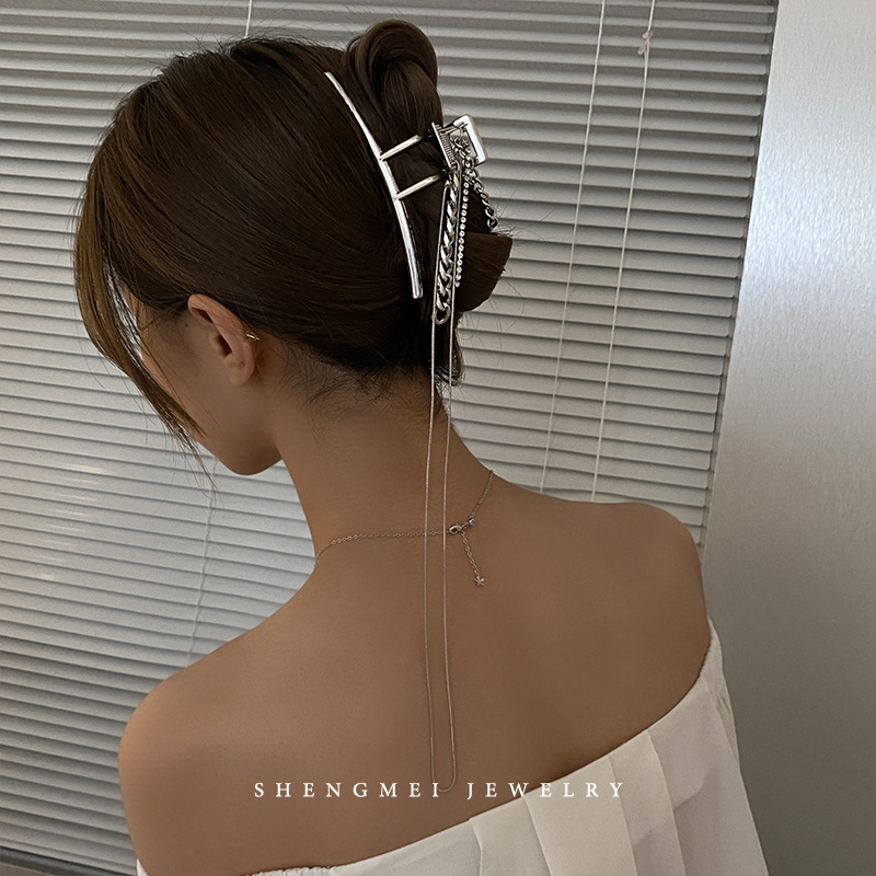 韩系冷淡风流苏链条金属大号鲨鱼夹发爪夹发抓夹头饰