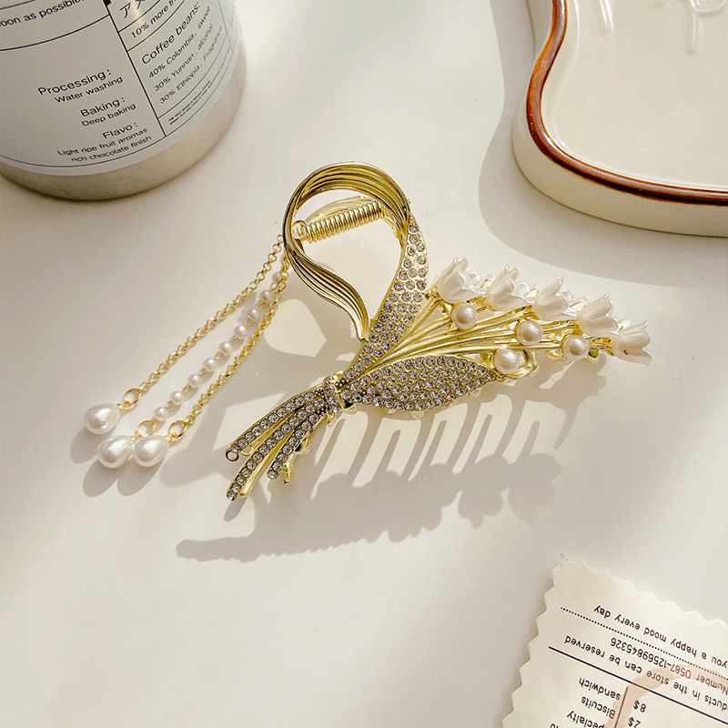 铃兰花金属爪夹女盘发发爪网红新款鲨鱼夹子怪手夹头饰