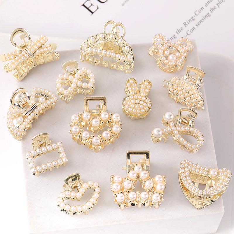 小号韩版新款发饰女镶珍珠抓夹小女孩编发爪夹蝴蝶结皇冠百搭发爪
