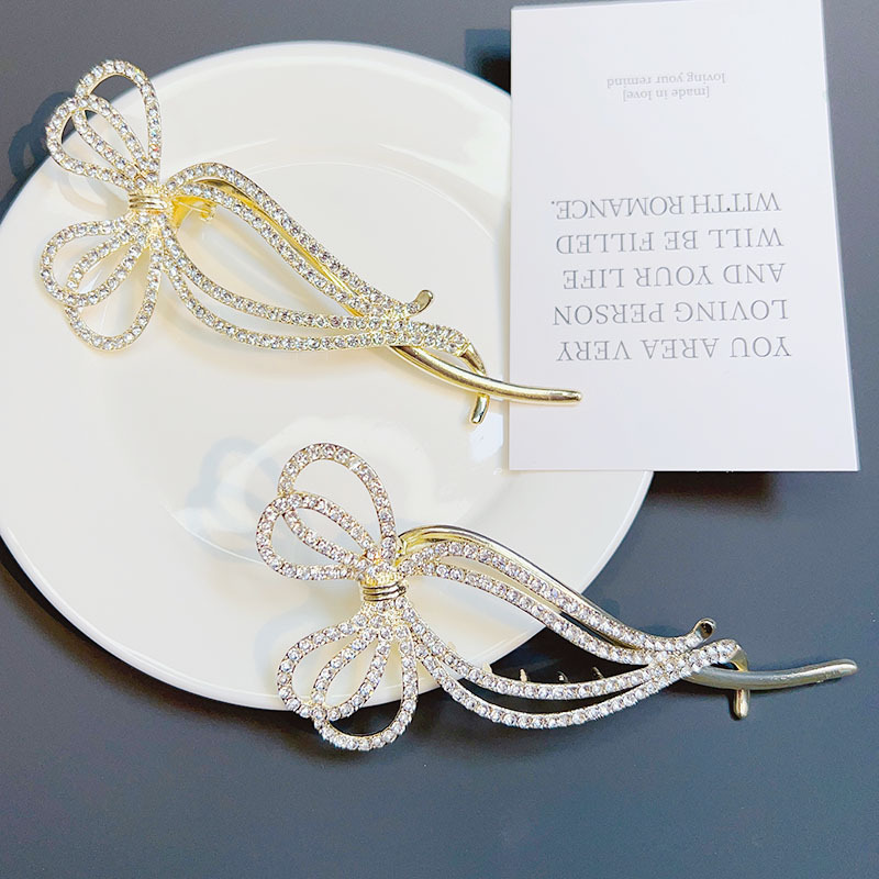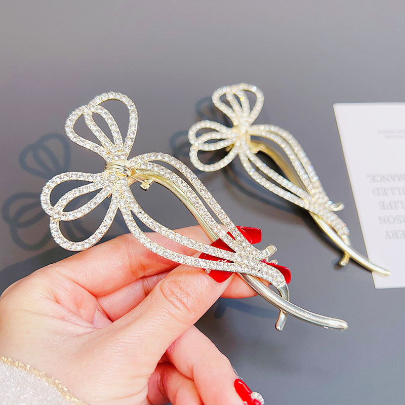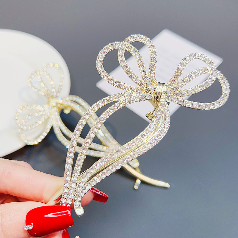 镶钻蝴蝶结金属发夹新款网红潮女盘发抓夹合金爪夹