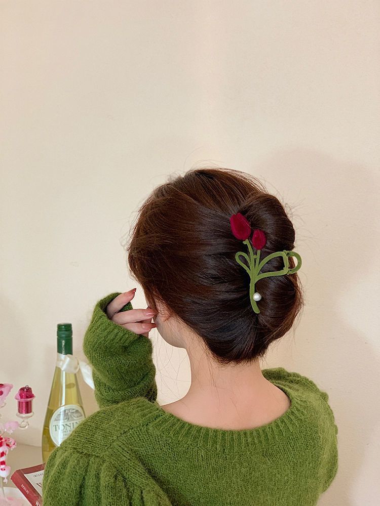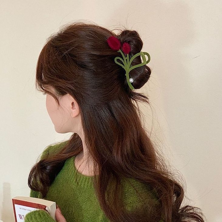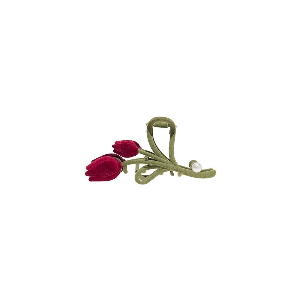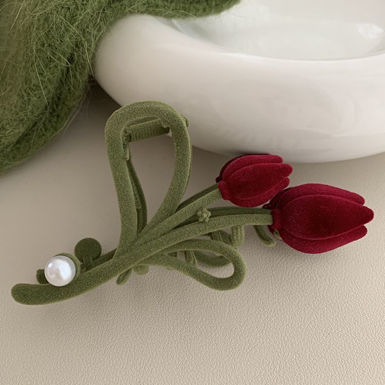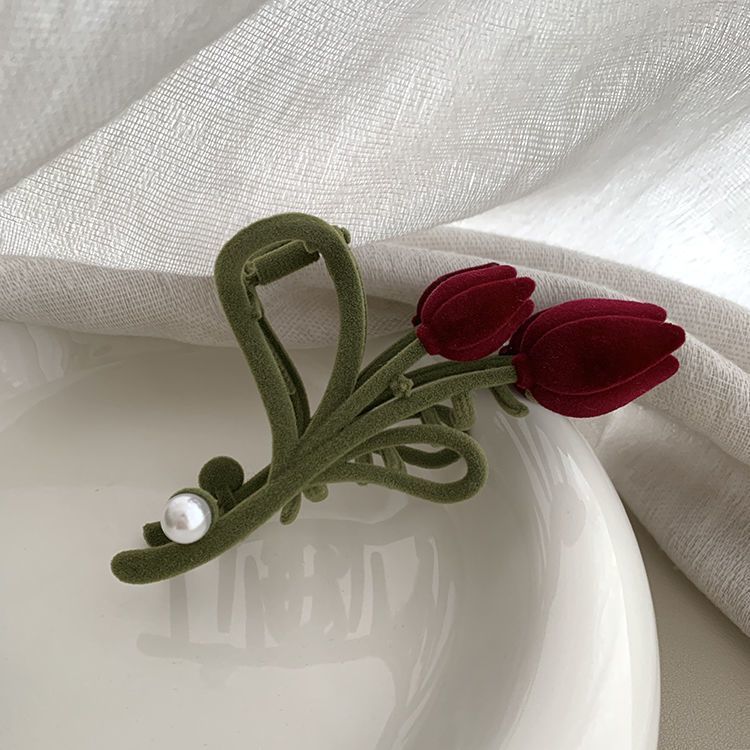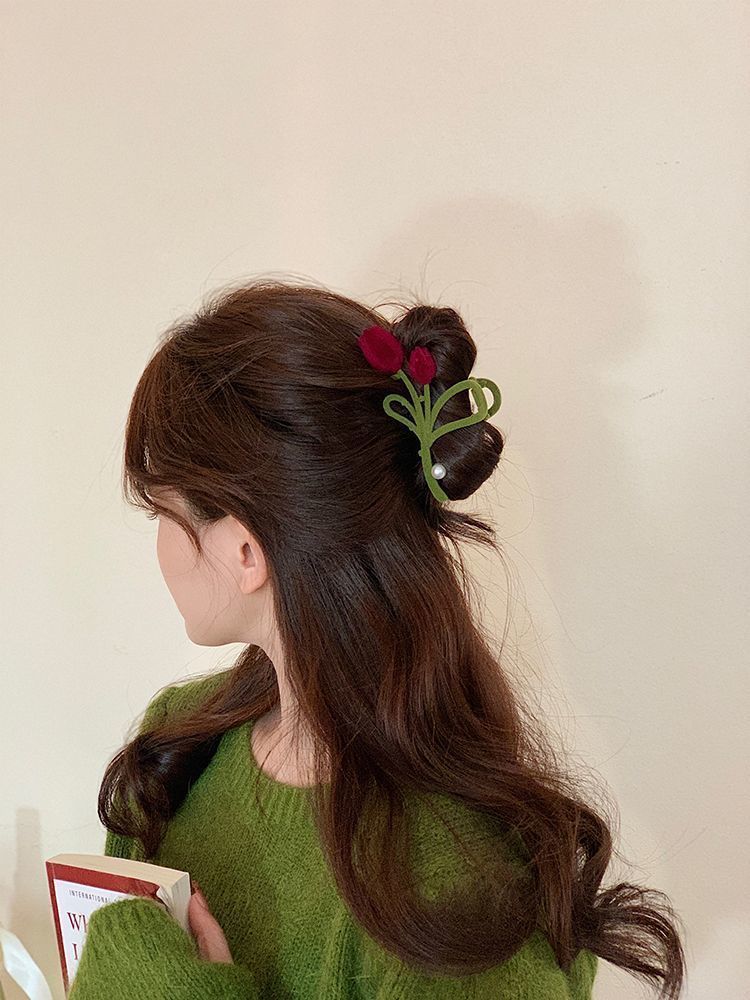 红色郁金香抓夹丝绒秋冬发夹郁金香发饰郁金香头饰郁金香发抓
