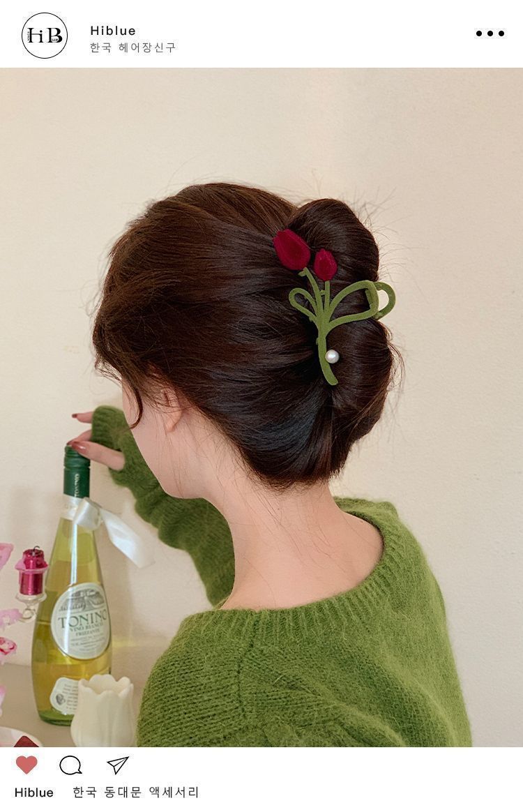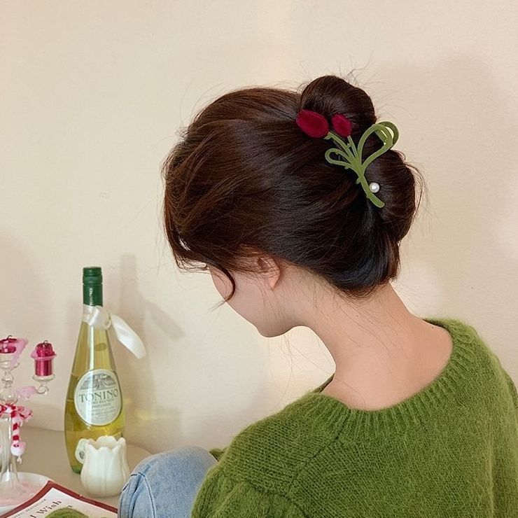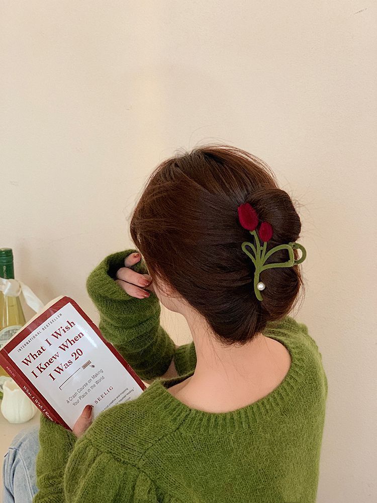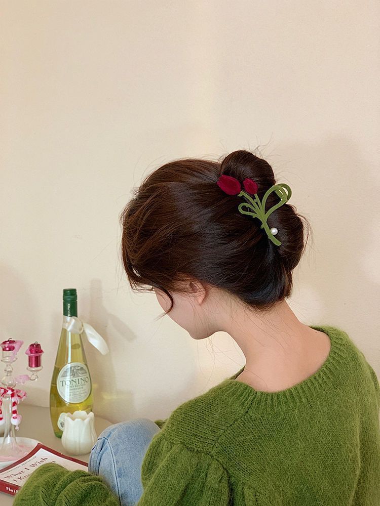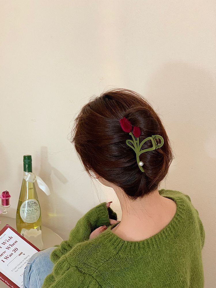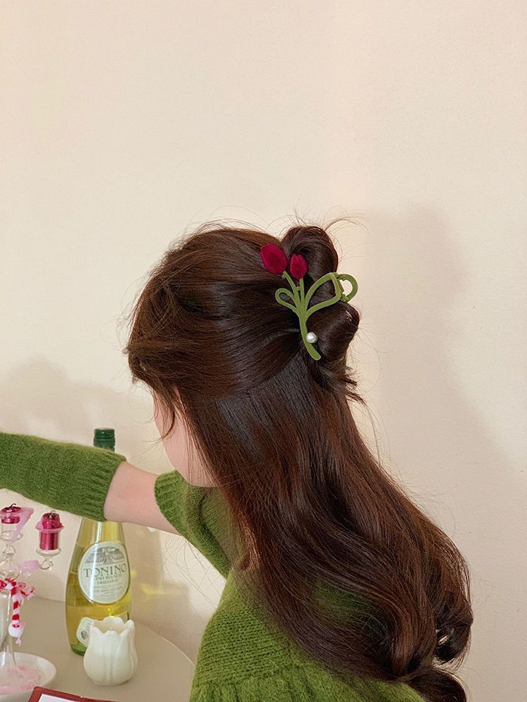 红色郁金香抓夹丝绒秋冬发夹郁金香发饰郁金香头饰郁金香发抓