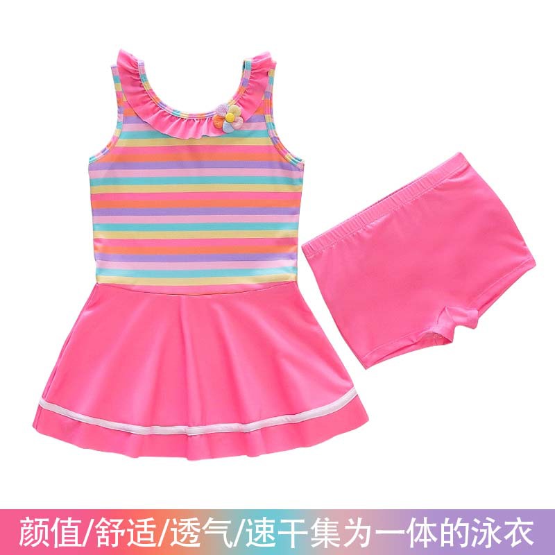 儿童泳衣夏女童游泳衣女孩分体连体可爱公主裙式小中大童温泉泳装