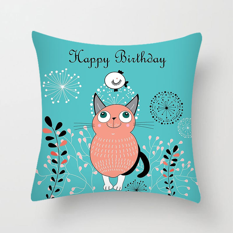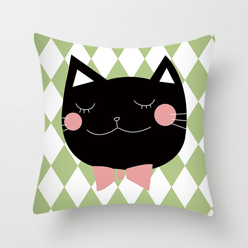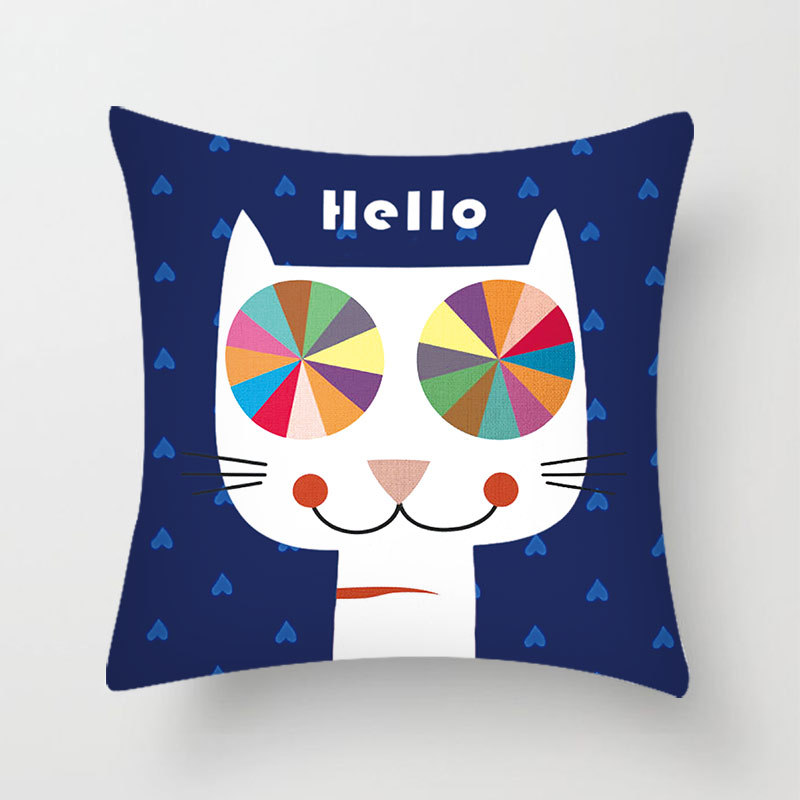 亚马逊跨境卡通可爱hello猫抱枕套卧室沙发靠垫套家居桃皮绒枕套