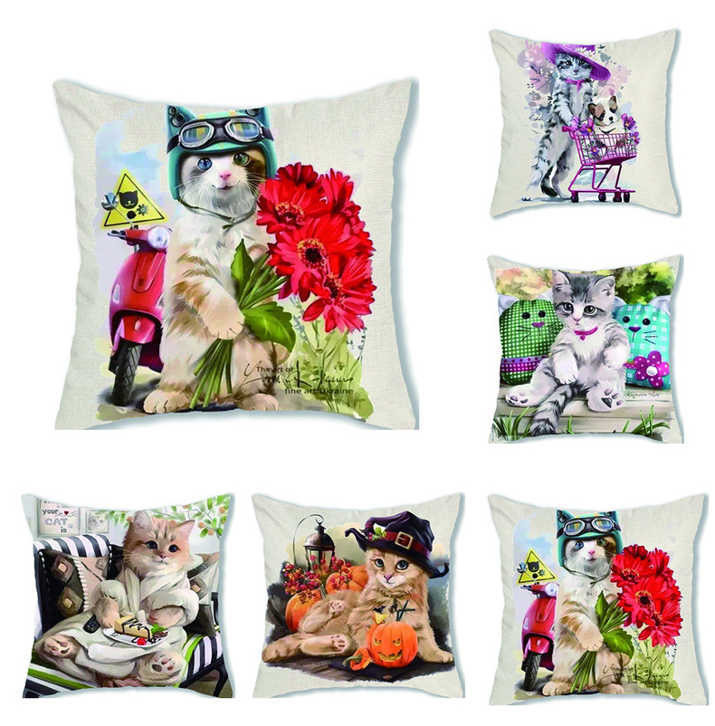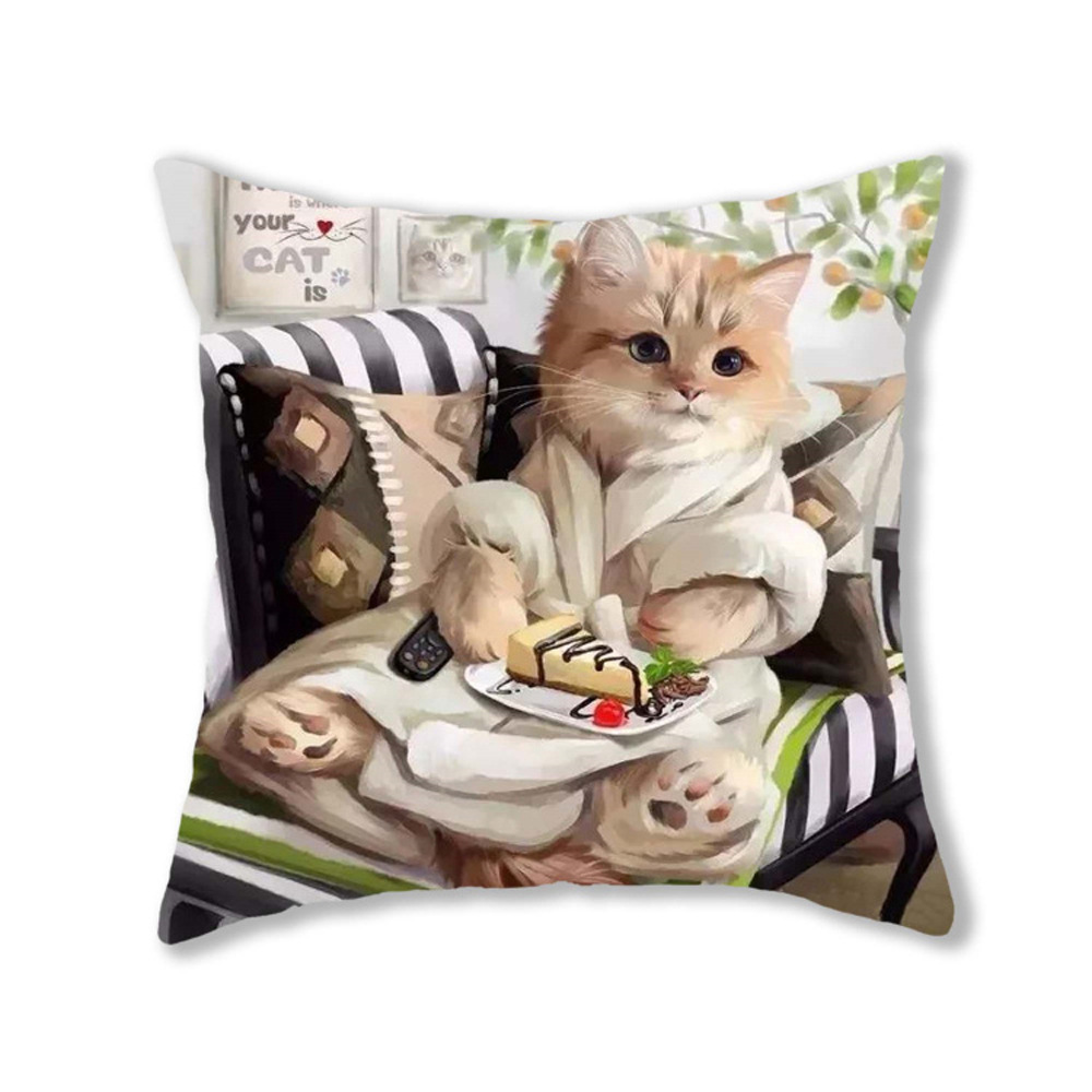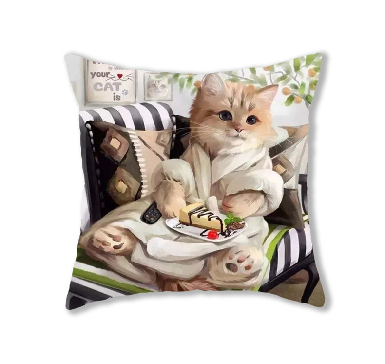 可爱猫咪现代简约抱枕茶餐厅沙发居家餐厅座椅清晰萌趣动物靠垫套