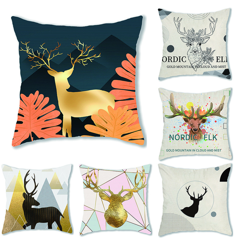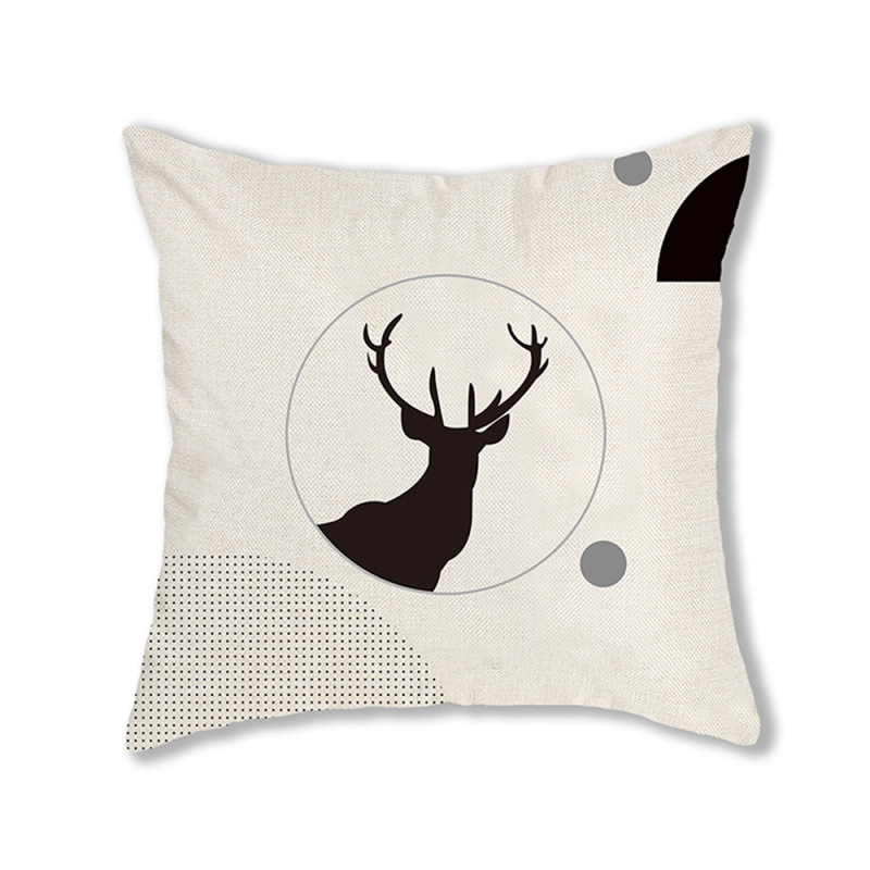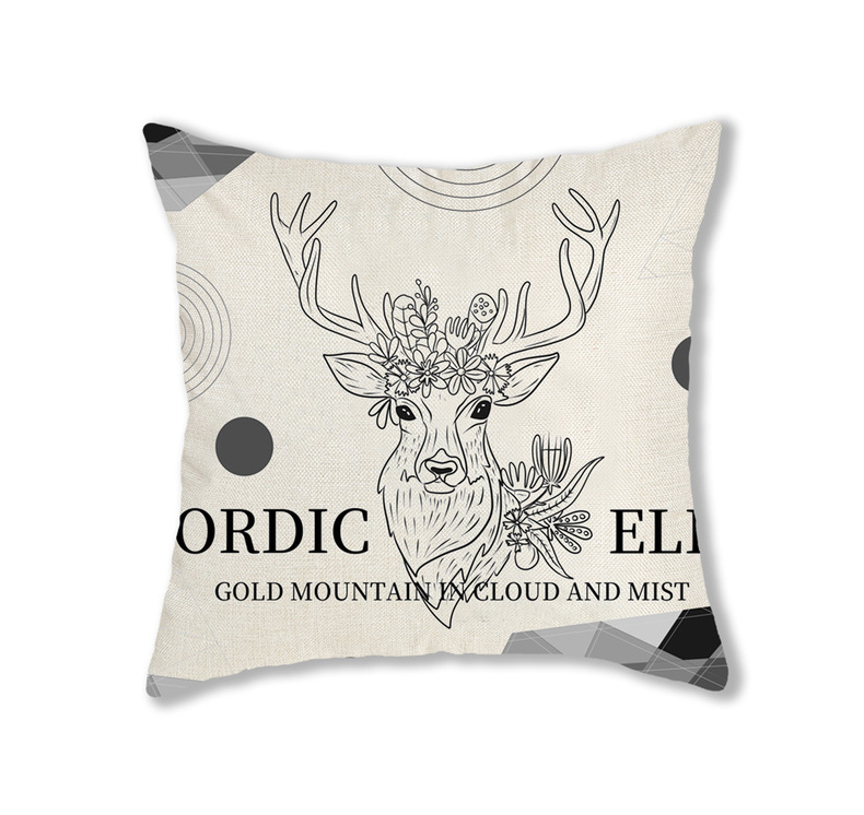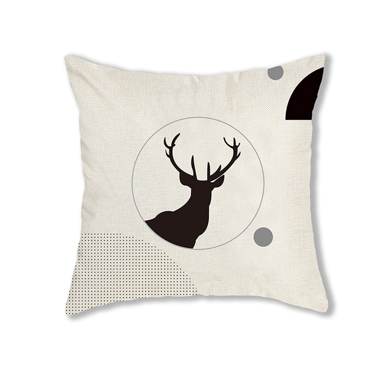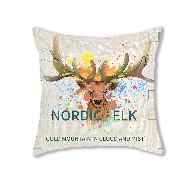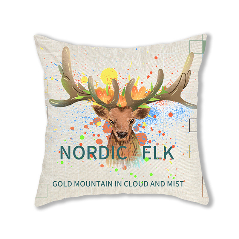 手绘卡通水彩数码印花抱枕套圣诞节麋鹿头像节日活动礼品装饰靠垫