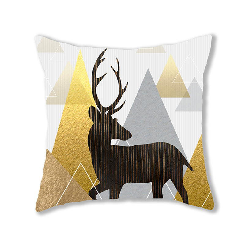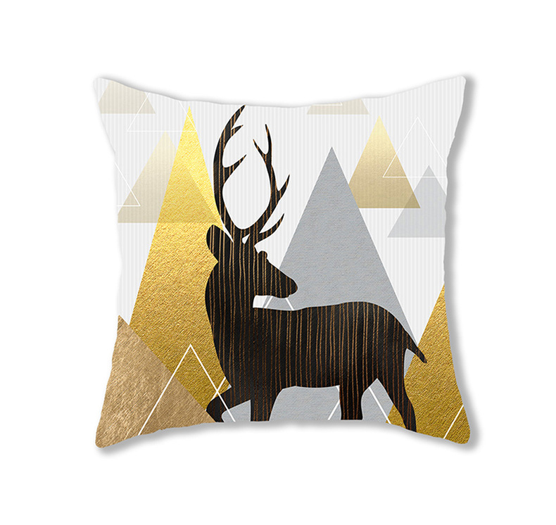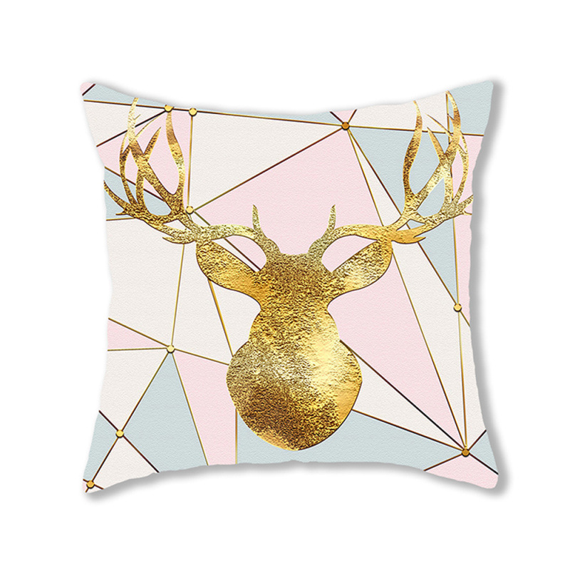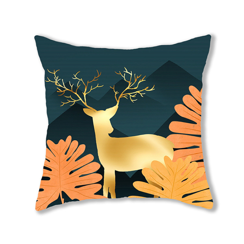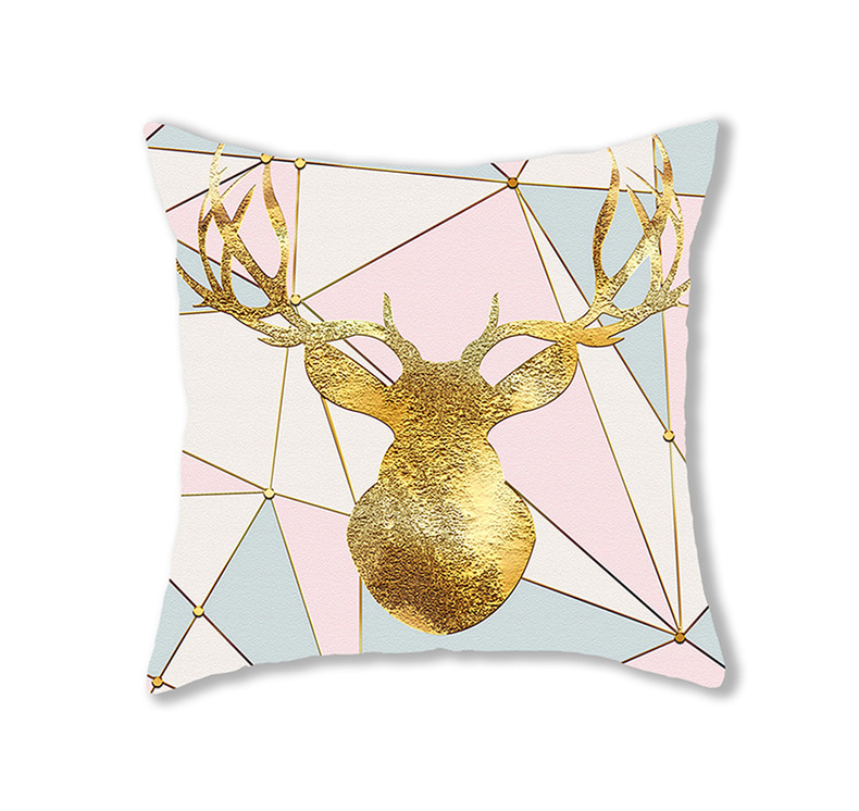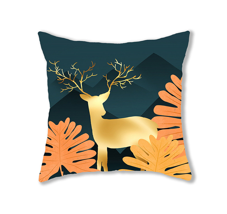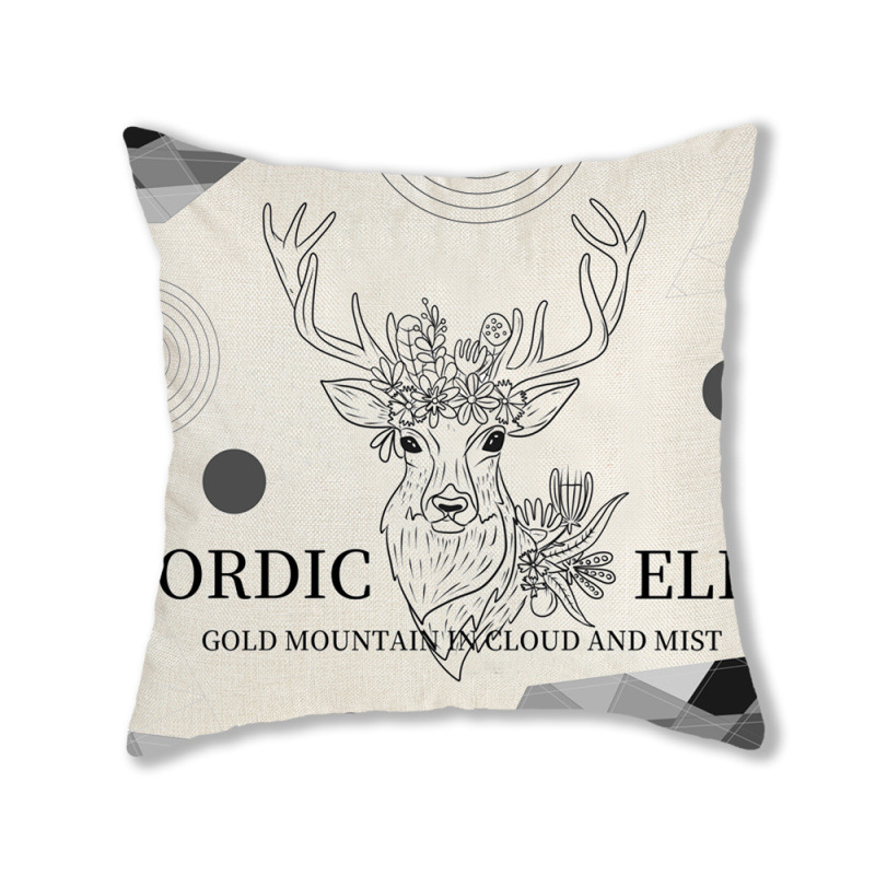 手绘卡通水彩数码印花抱枕套圣诞节麋鹿头像节日活动礼品装饰靠垫