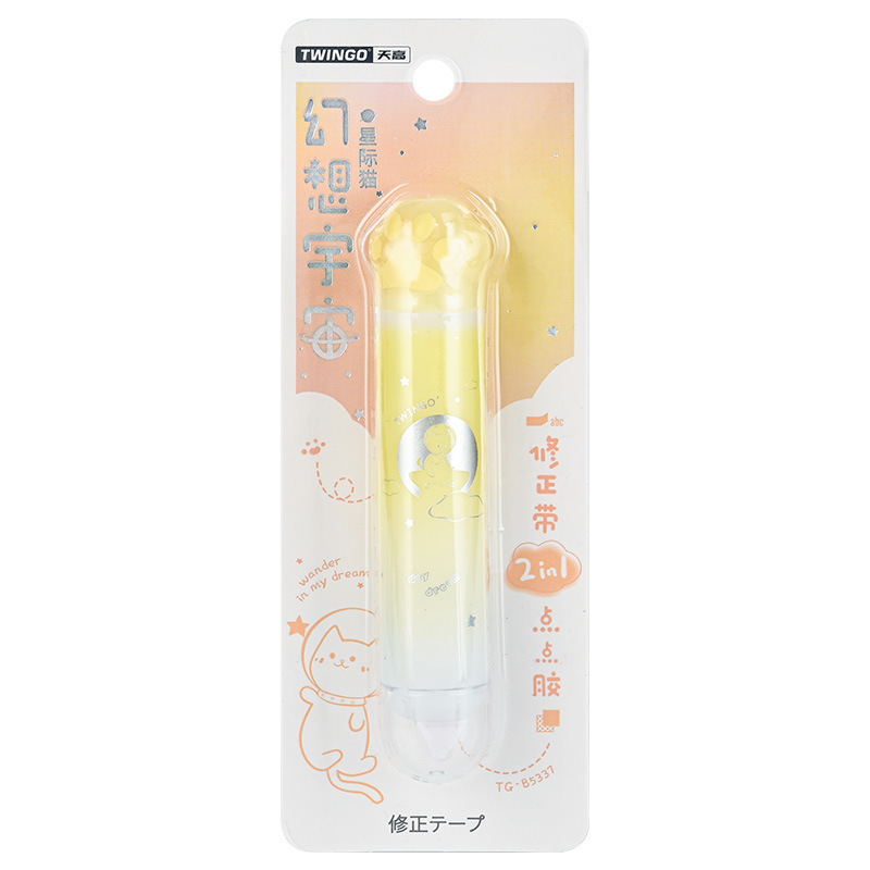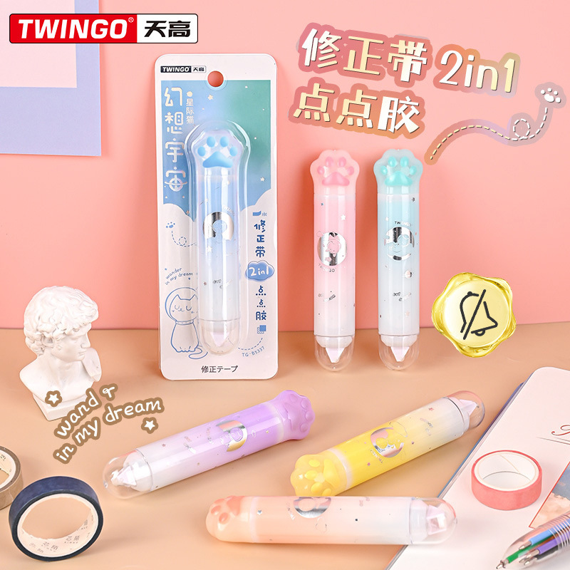 天高厂家批发可爱猫爪修正带点点胶二合一手账粘贴胶带静音改错带