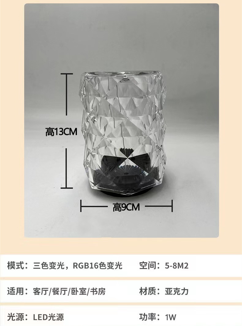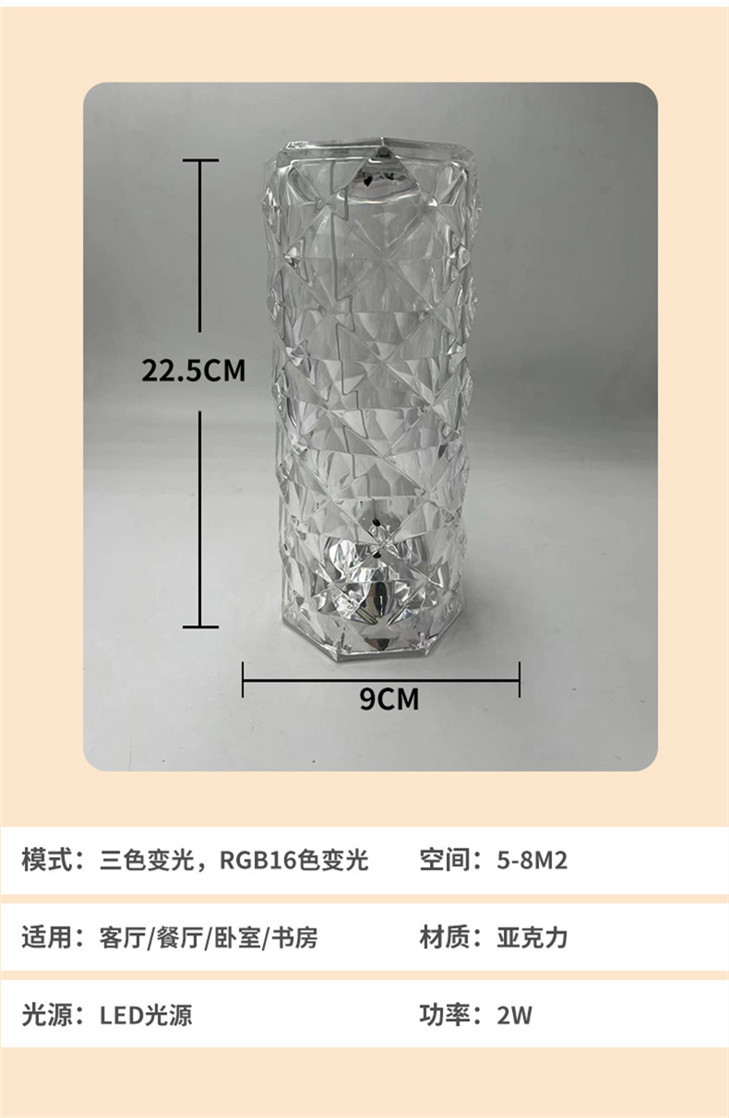 亚马逊热卖ins水晶台灯遥控触摸USB小夜灯户外卧室欧式玫瑰氛围灯