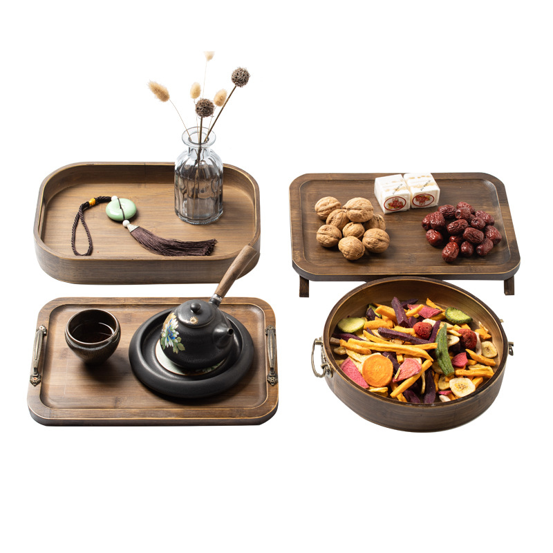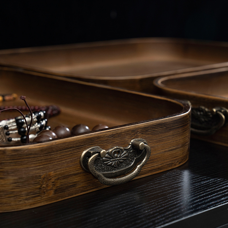 黑胡桃木质托盘日式复古桃木纹茶盘家用方形水果盘糕点盘实木托盘