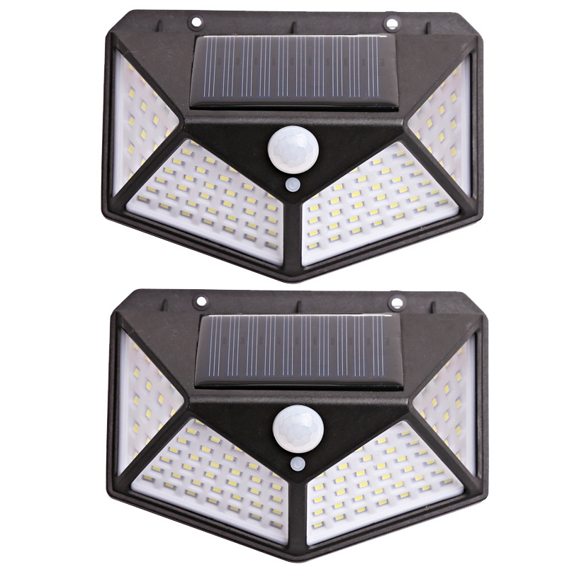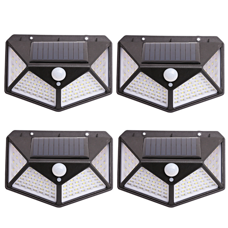 四面100LED太阳能灯人体感应灯景观庭院壁灯户外防水围墙照明路灯