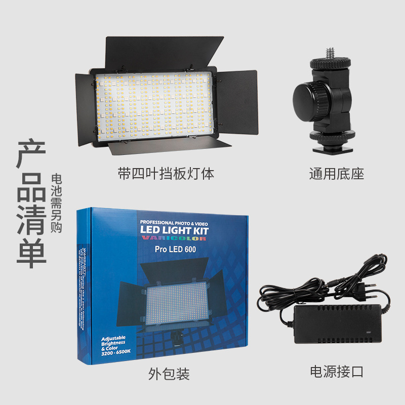 外贸专供LED600平板灯四叶挡板摄影补光灯美食直播摄影补光灯