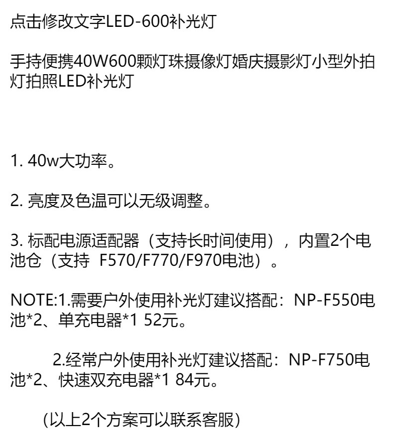 单反摄影灯视频直播led摄像灯补光灯Pro Led U600+ U800+机顶灯
