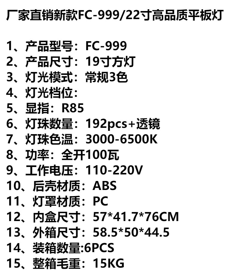 新款直播平板22寸补光灯拍照摄影灯LED间影棚打光柔光平板灯影视