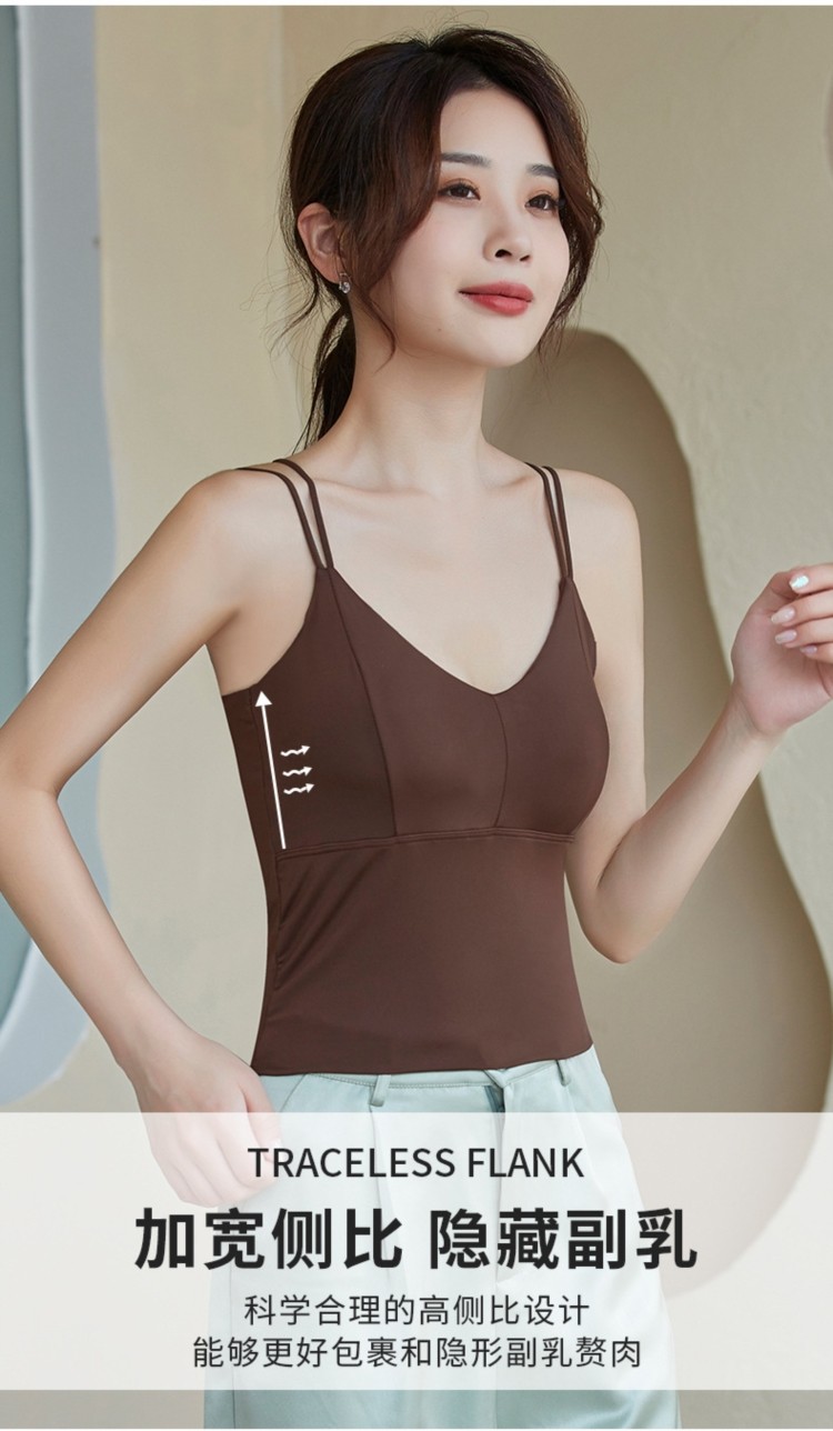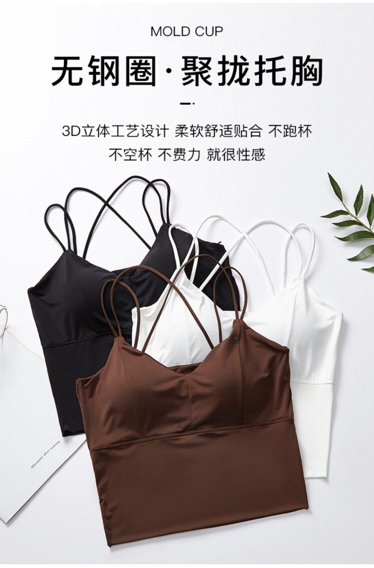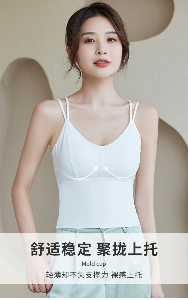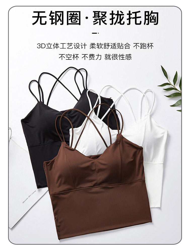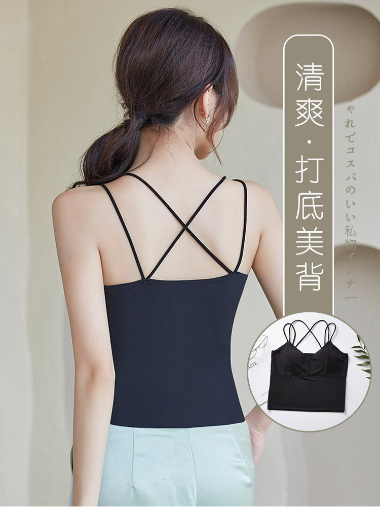 夏季内搭吊带带胸垫高级感中长款冰丝无痕打底大U美背文胸一体女