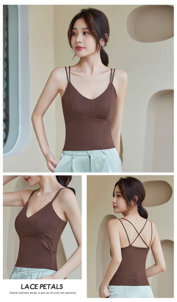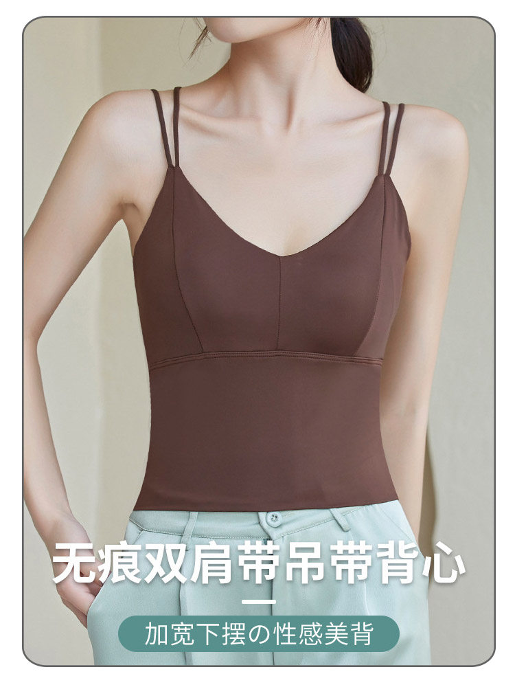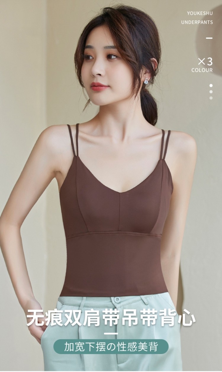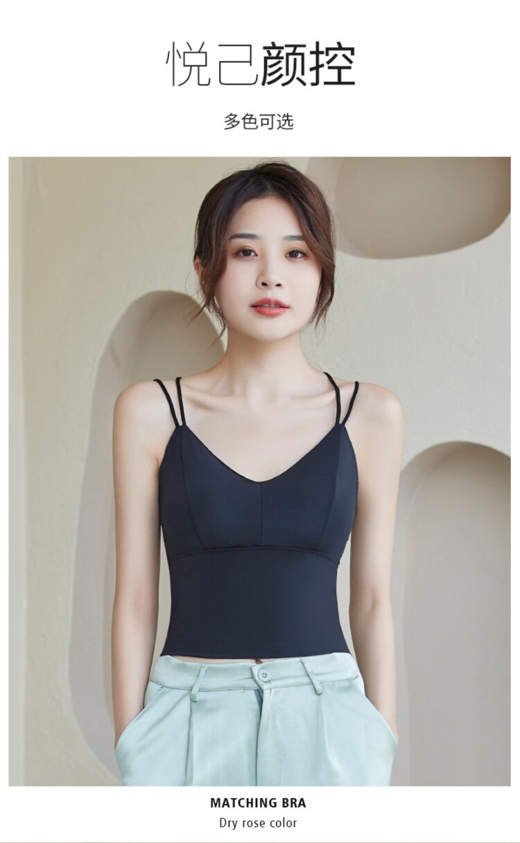 夏季内搭吊带带胸垫高级感中长款冰丝无痕打底大U美背文胸一体女
