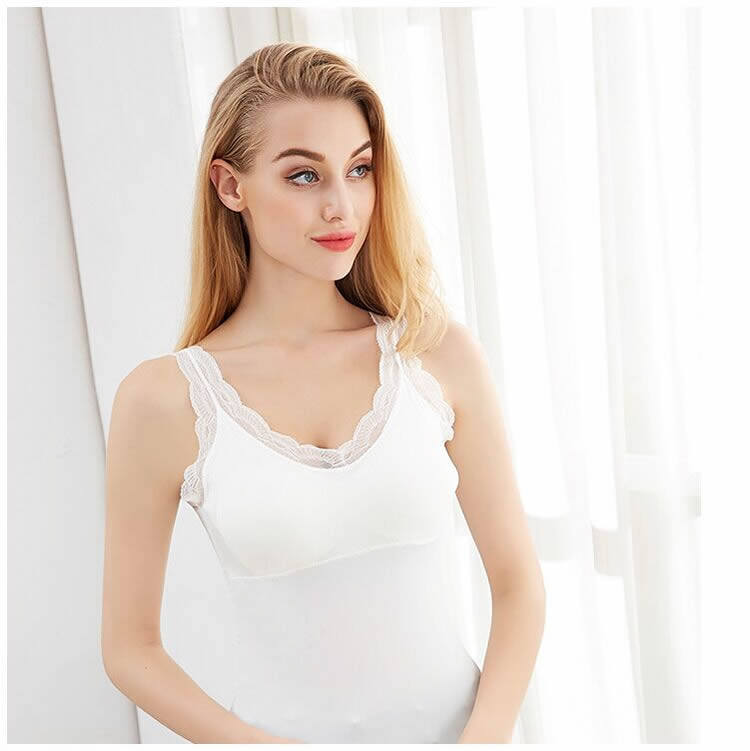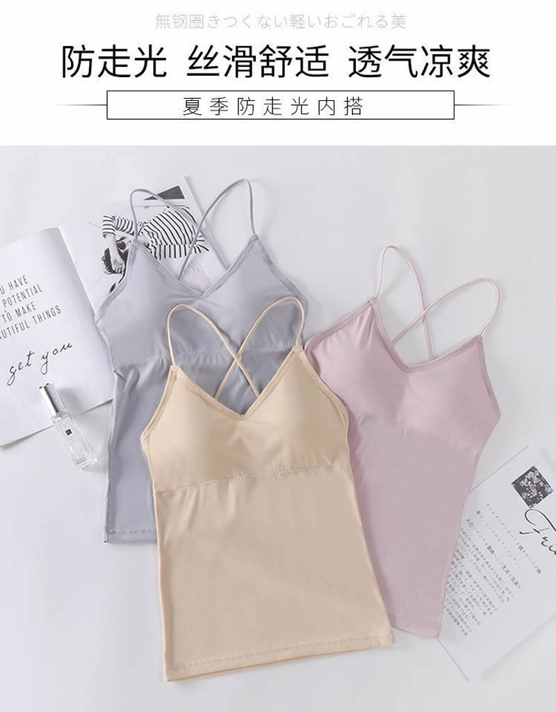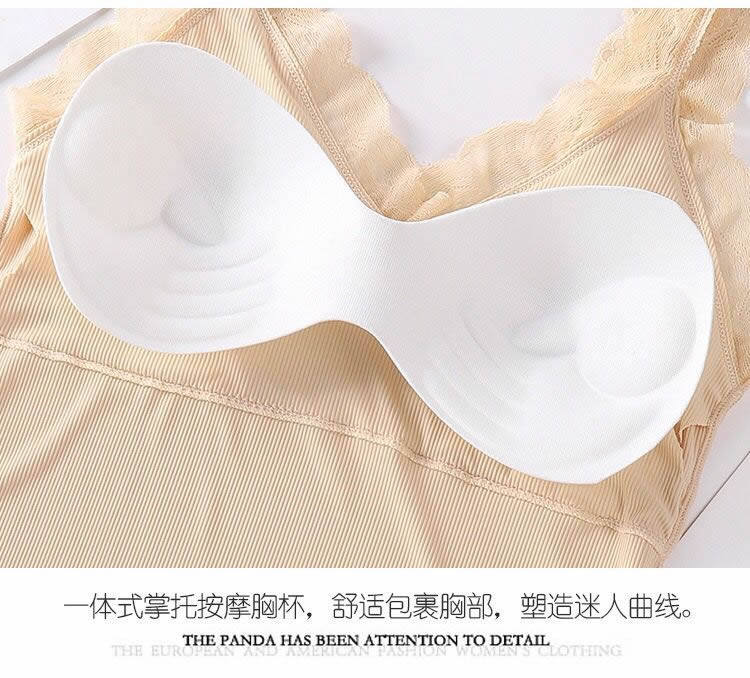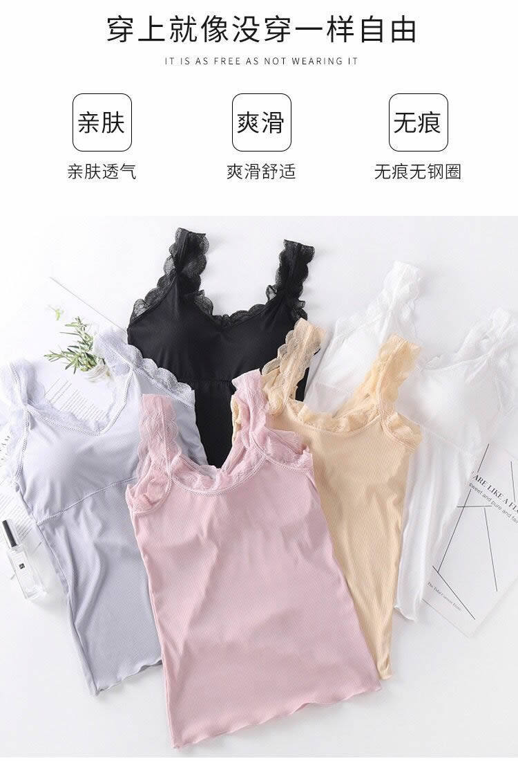 夏季薄款性感冰丝长款蕾丝吊带背心可拆胸垫外穿内搭防走光睡内衣