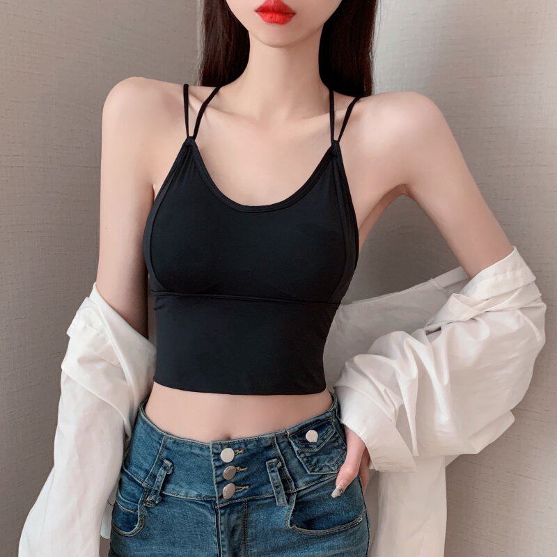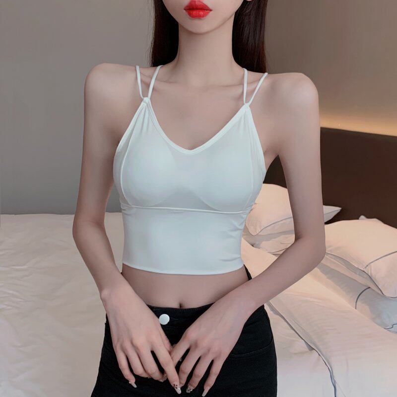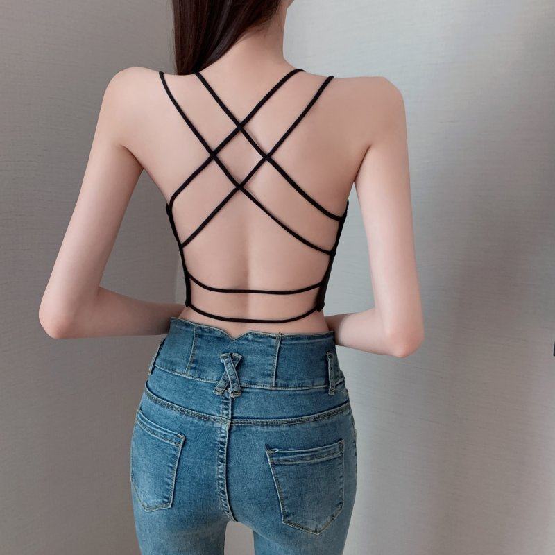 网红炸街细肩带交叉镂空美背夏季外穿冰丝吊带背心百搭打底上衣女