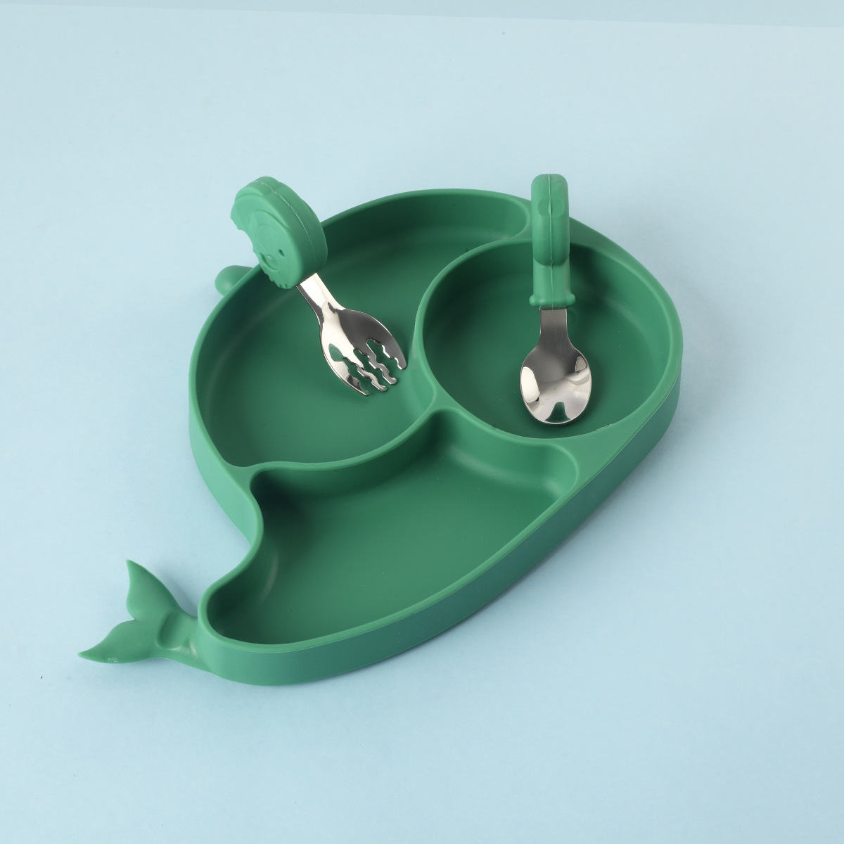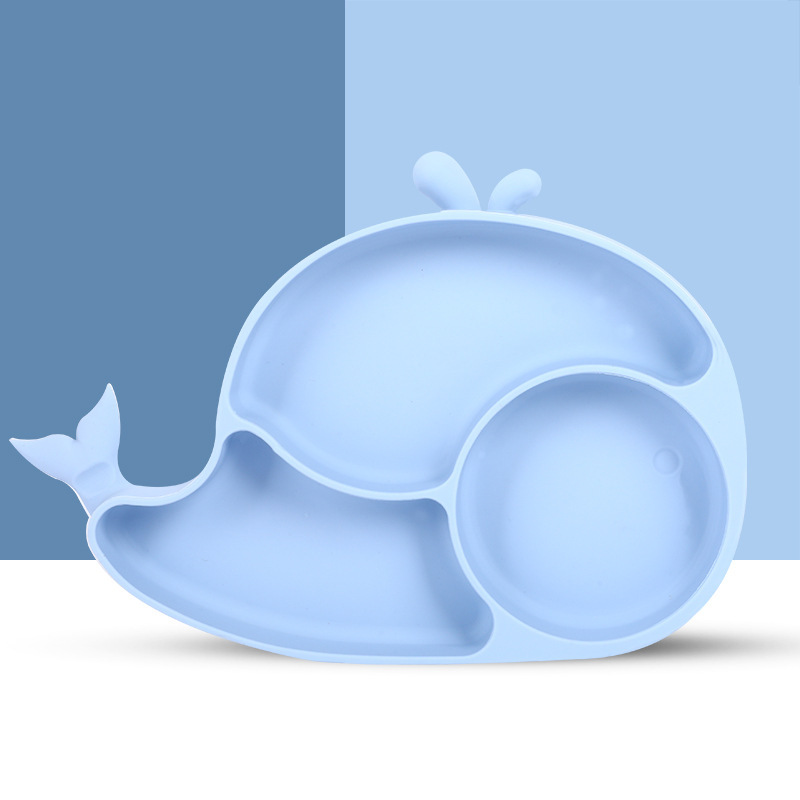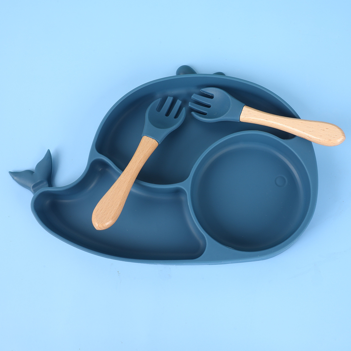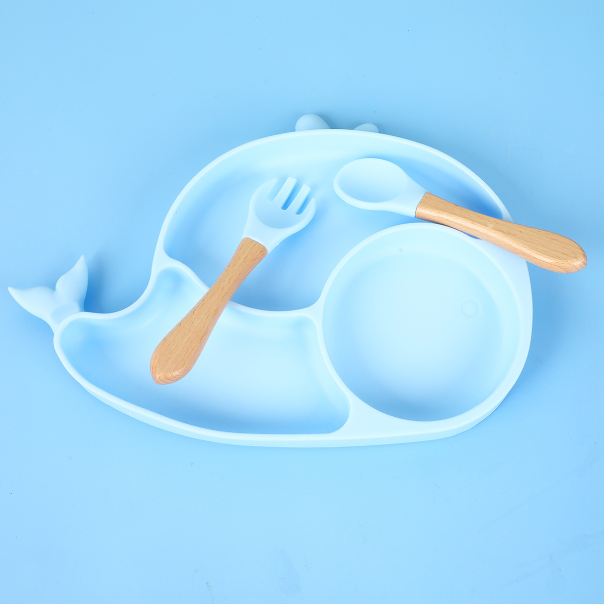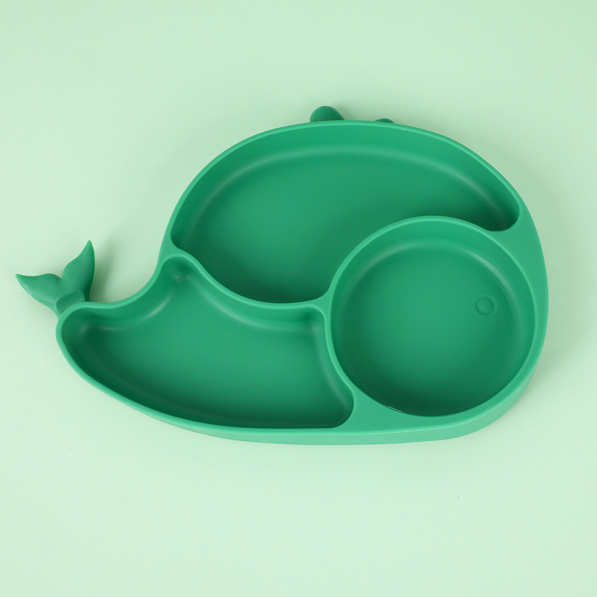 婴儿吸盘一体式学吃饭硅胶吸管碗勺套装宝宝硅胶餐盘分格盘卡通