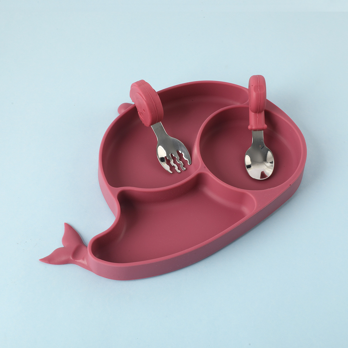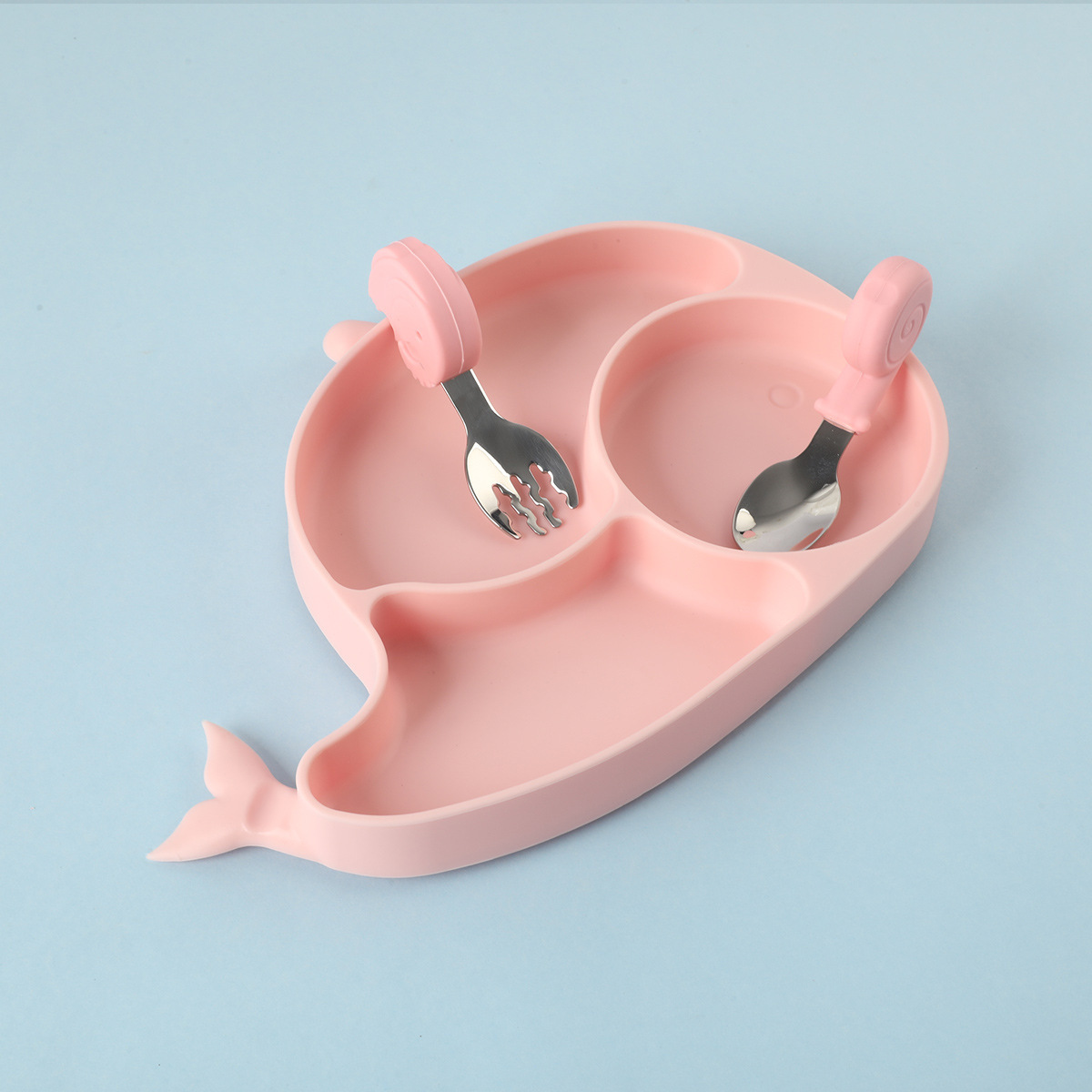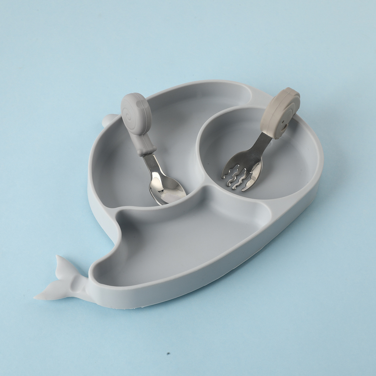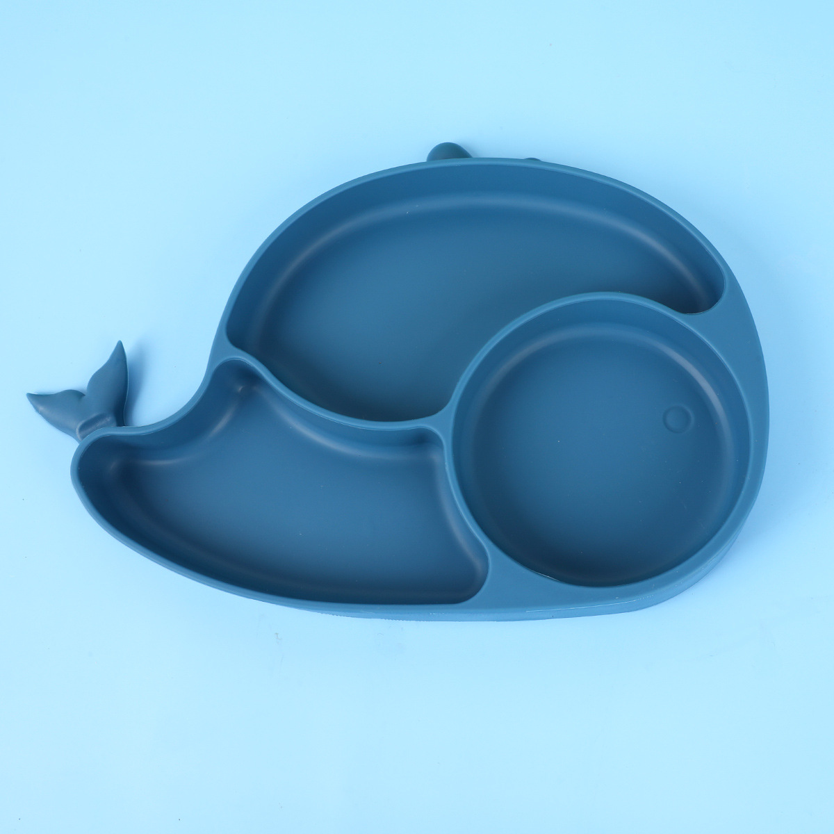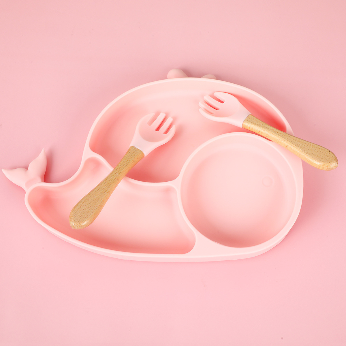 婴儿吸盘一体式学吃饭硅胶吸管碗勺套装宝宝硅胶餐盘分格盘卡通