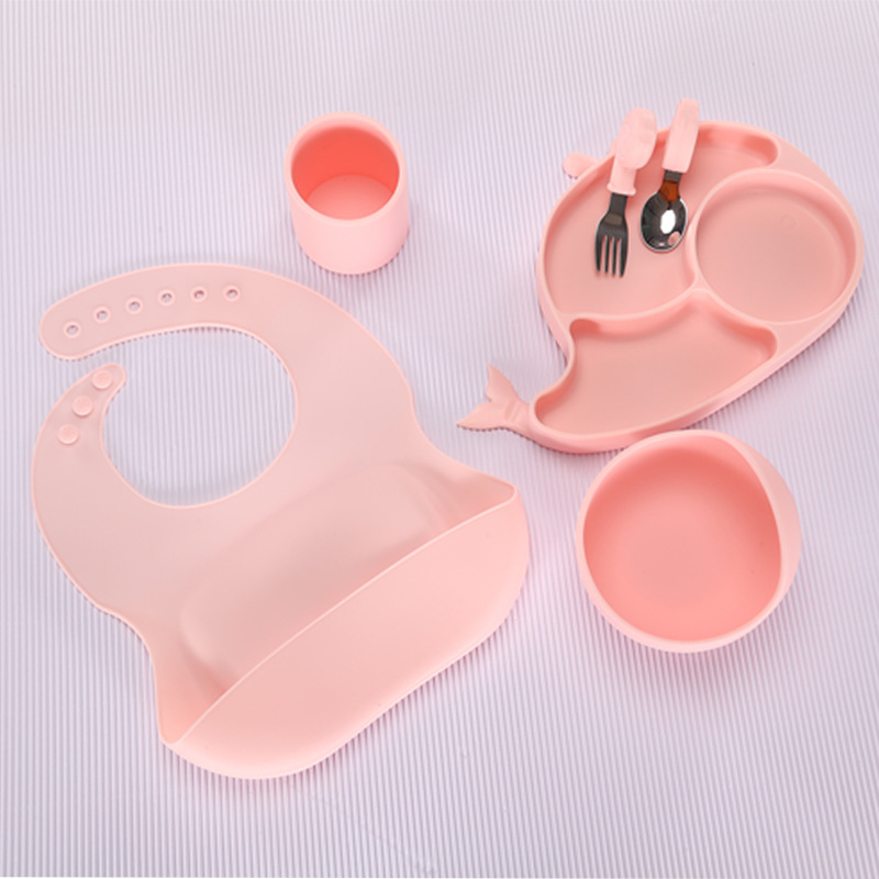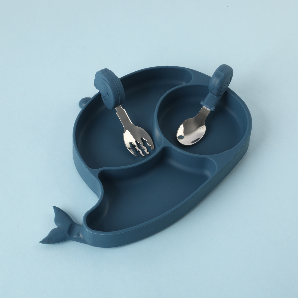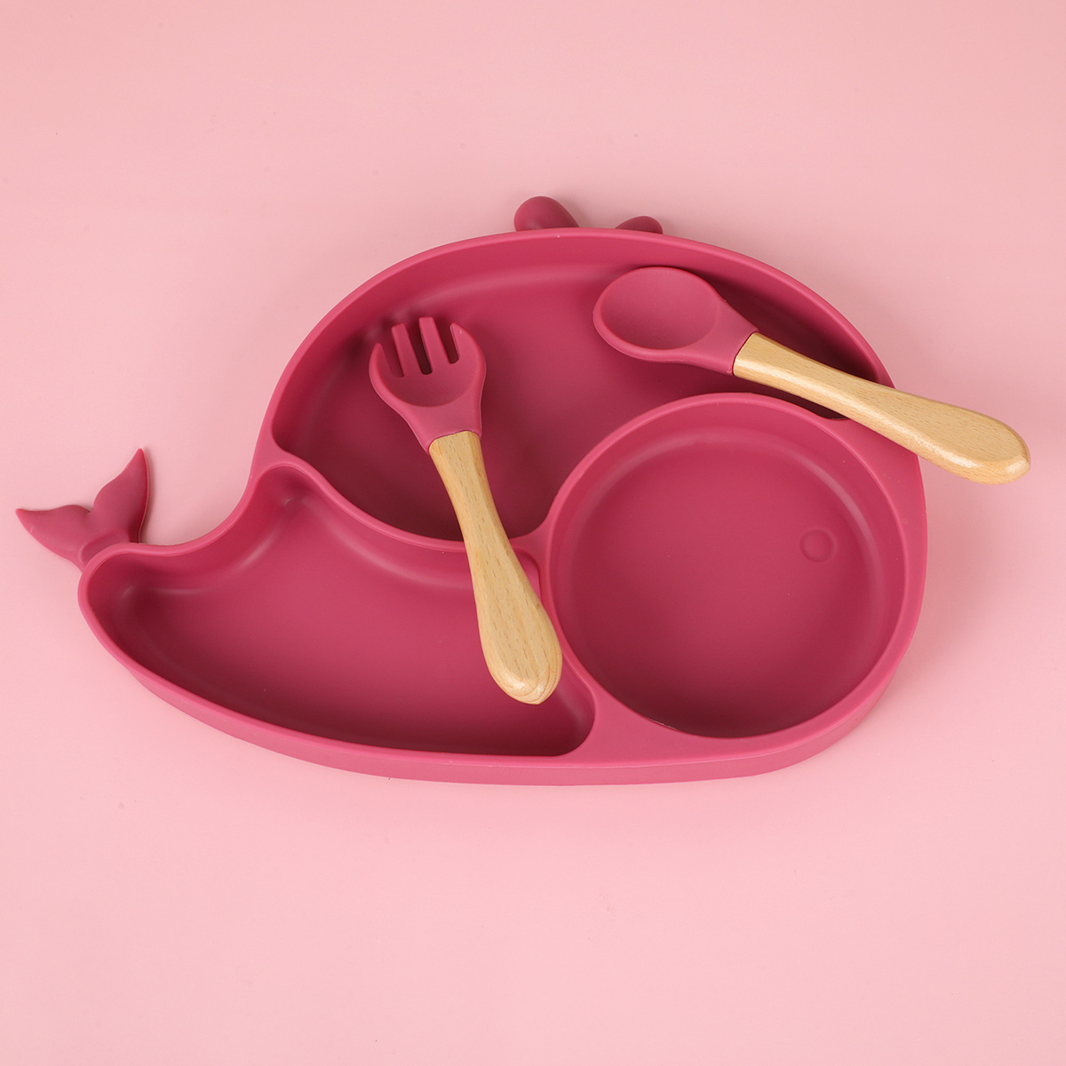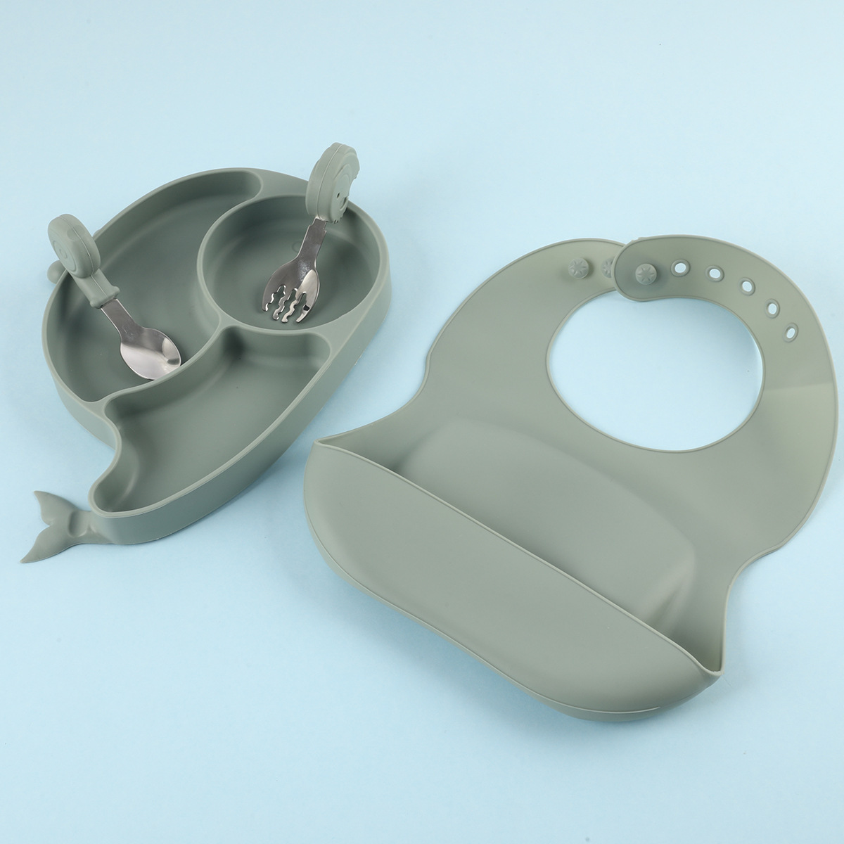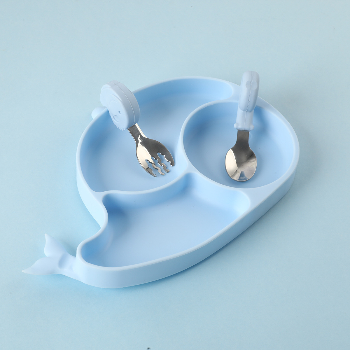 婴儿吸盘一体式学吃饭硅胶吸管碗勺套装宝宝硅胶餐盘分格盘卡通
