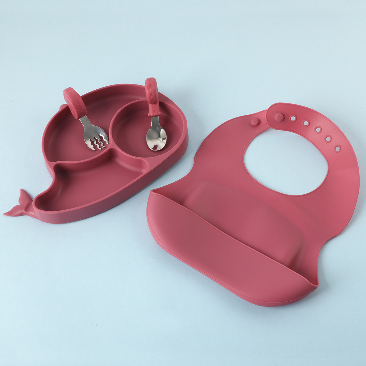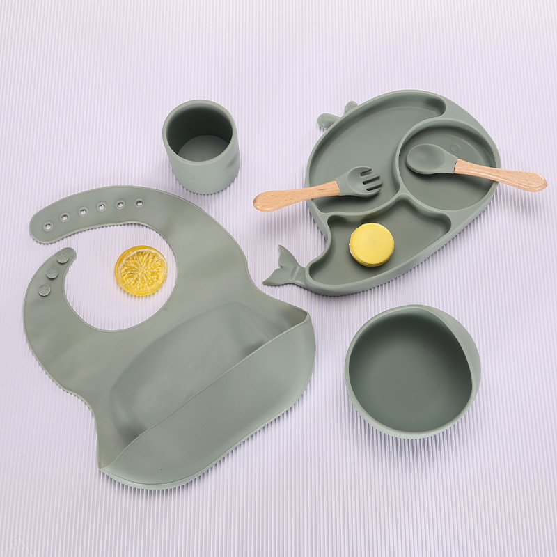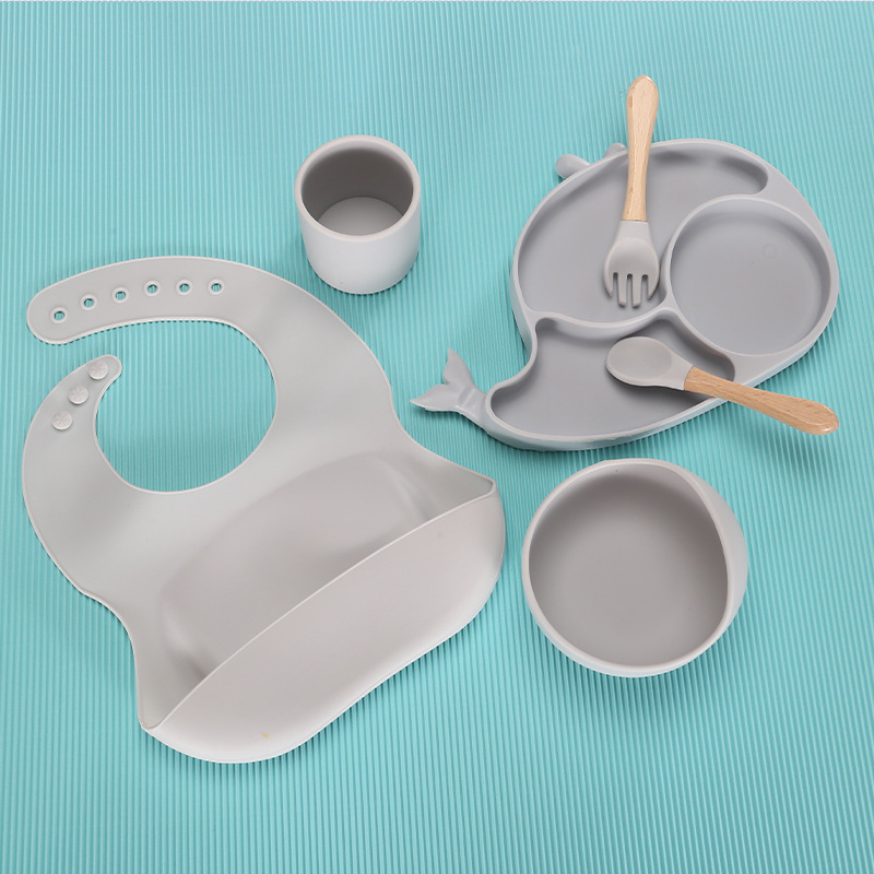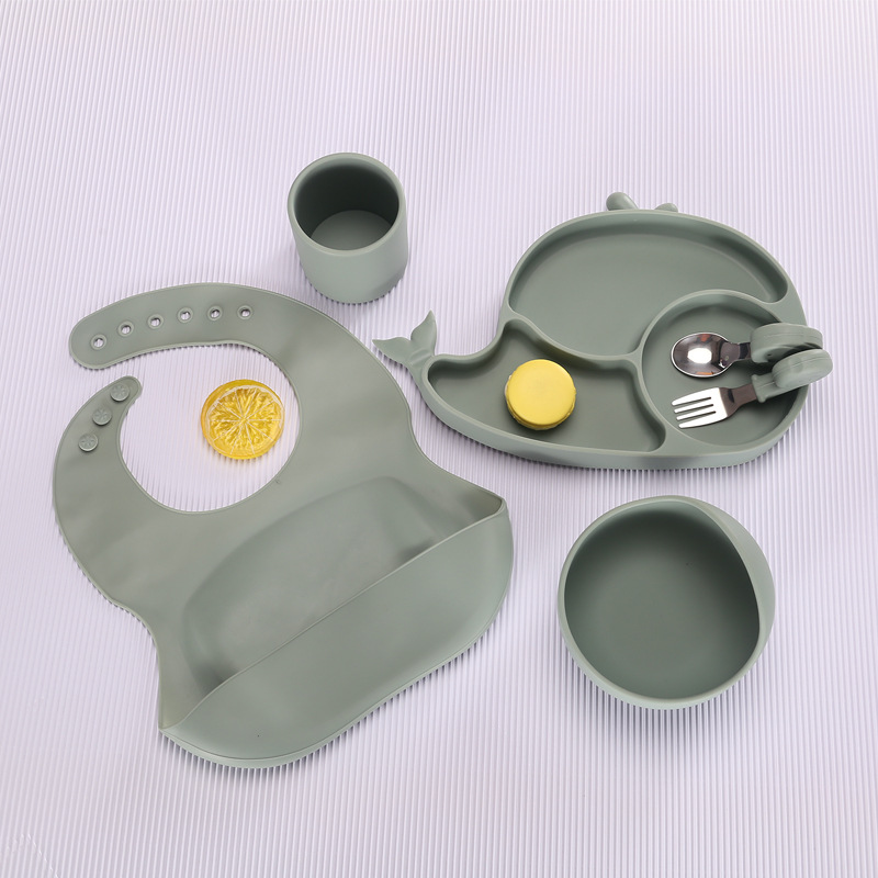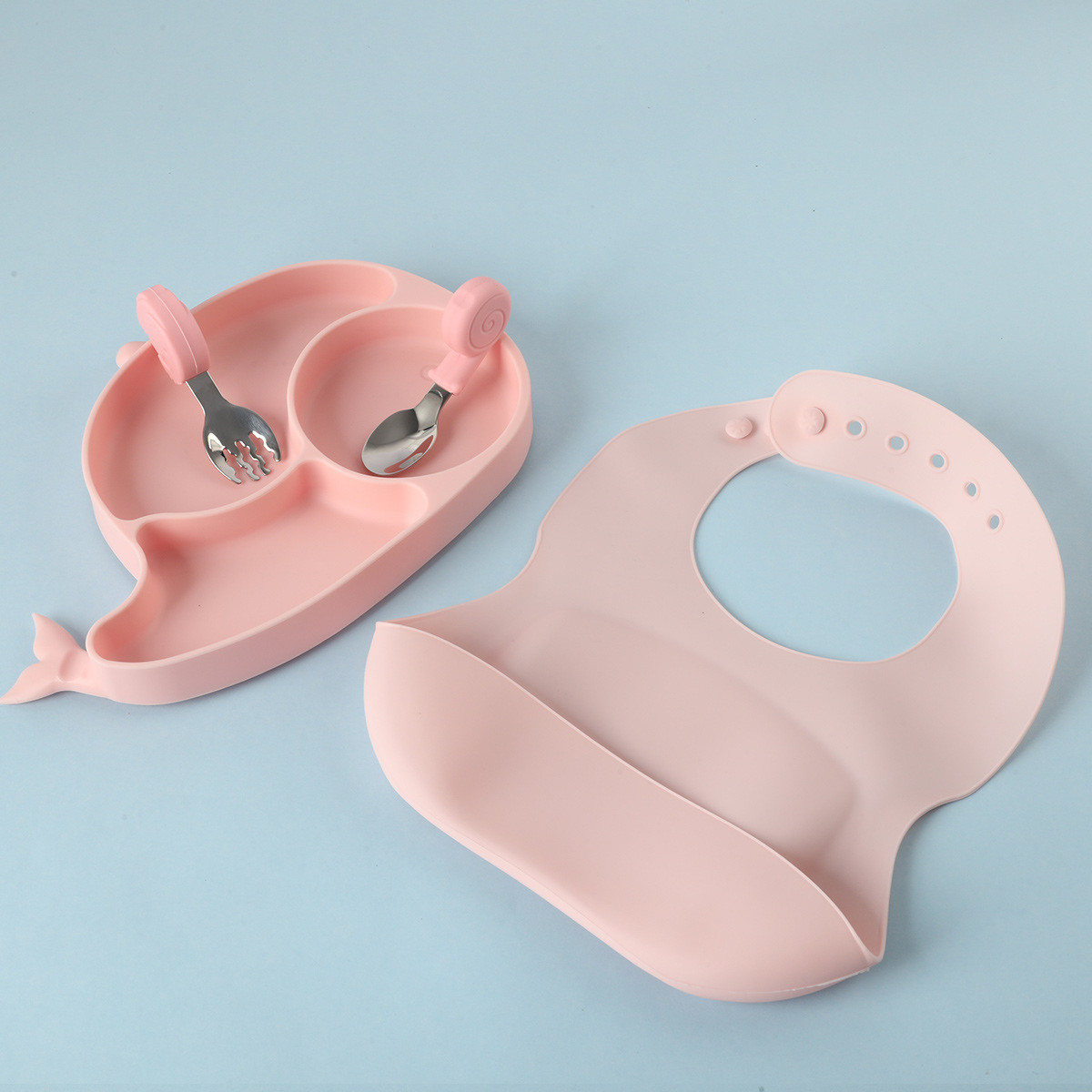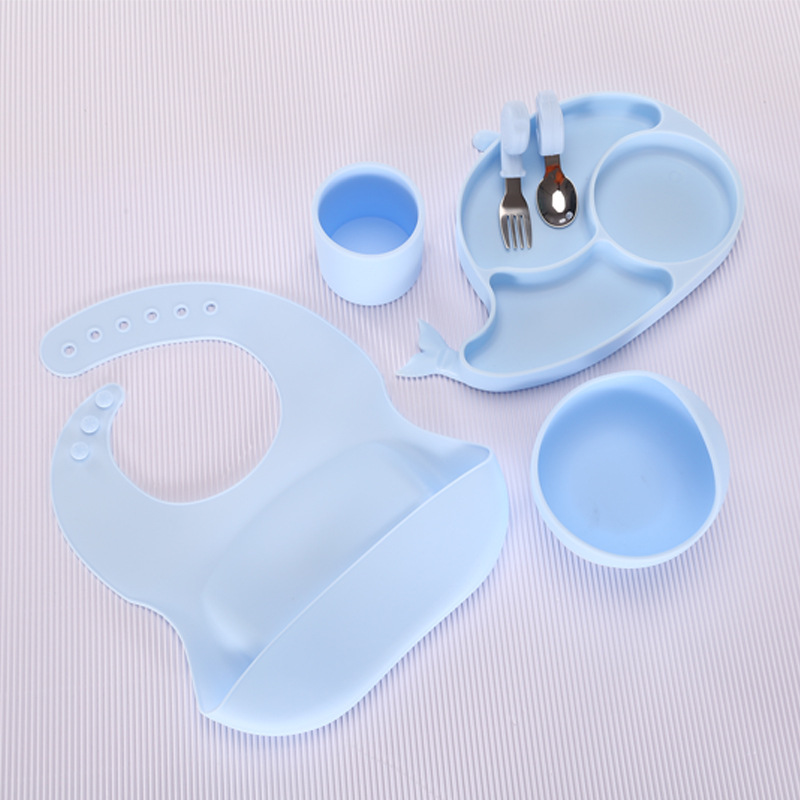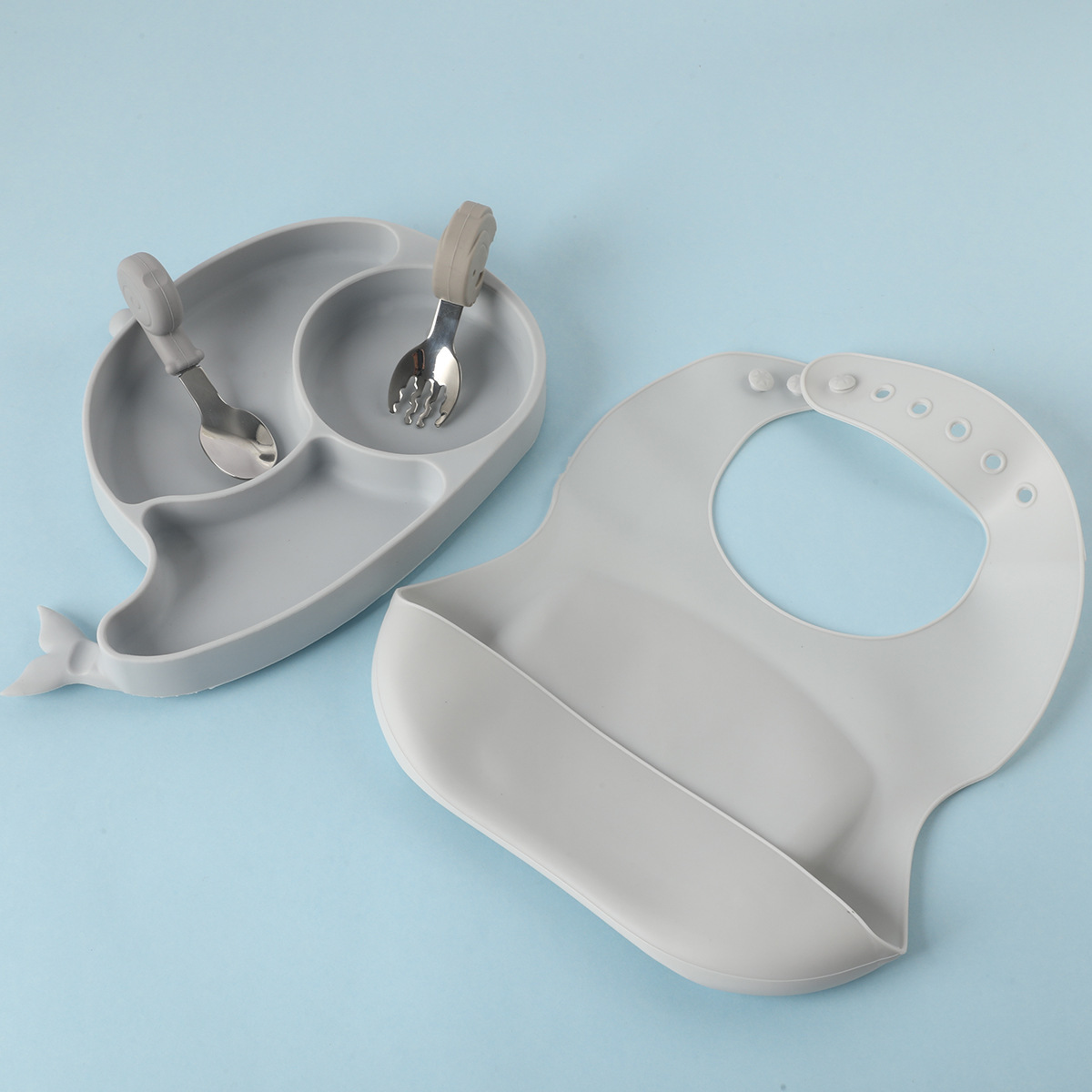 婴儿吸盘一体式学吃饭硅胶吸管碗勺套装宝宝硅胶餐盘分格盘卡通