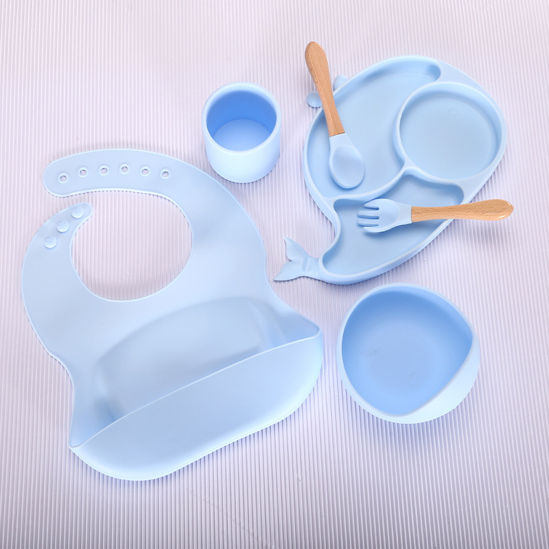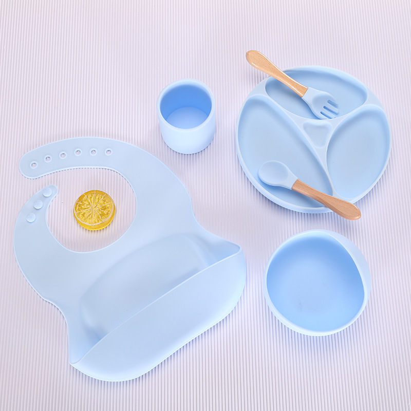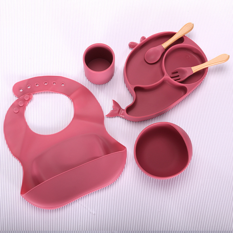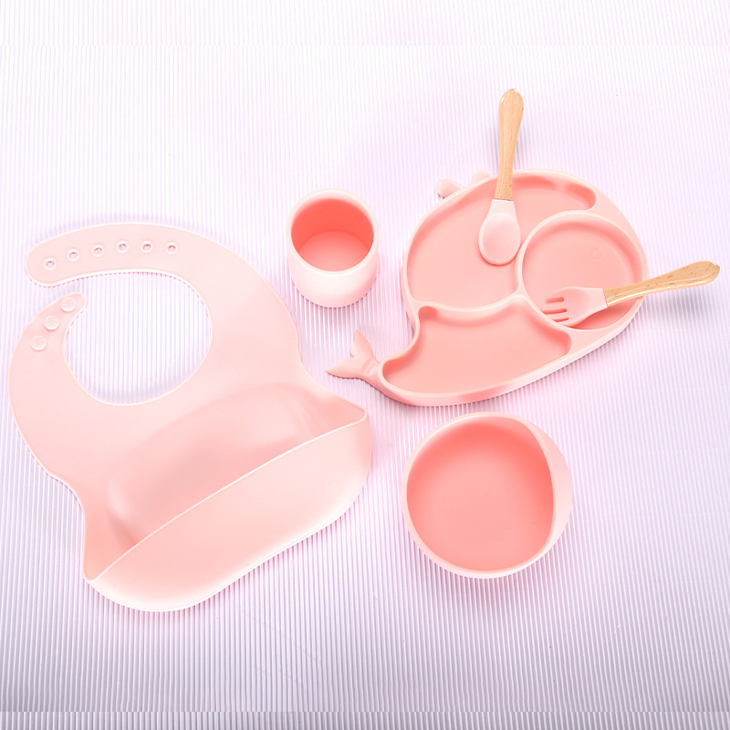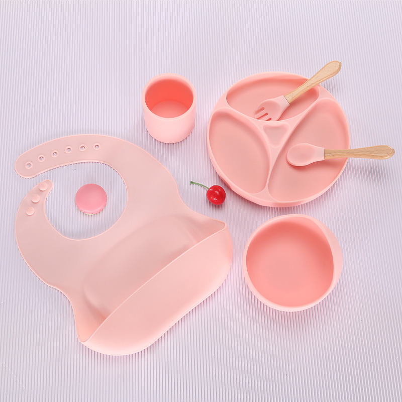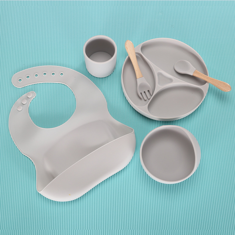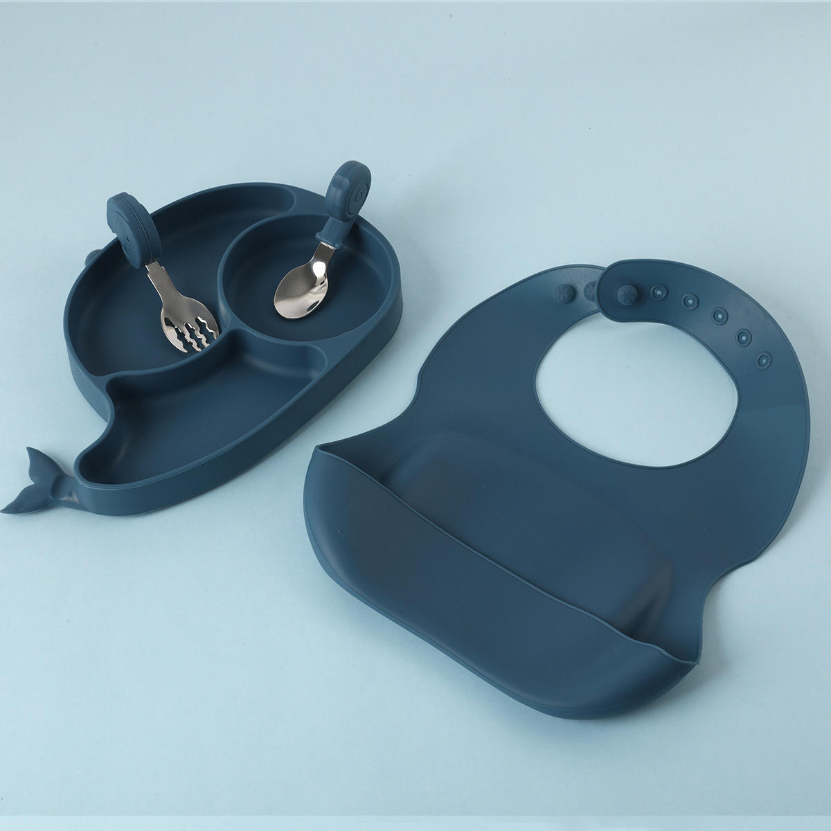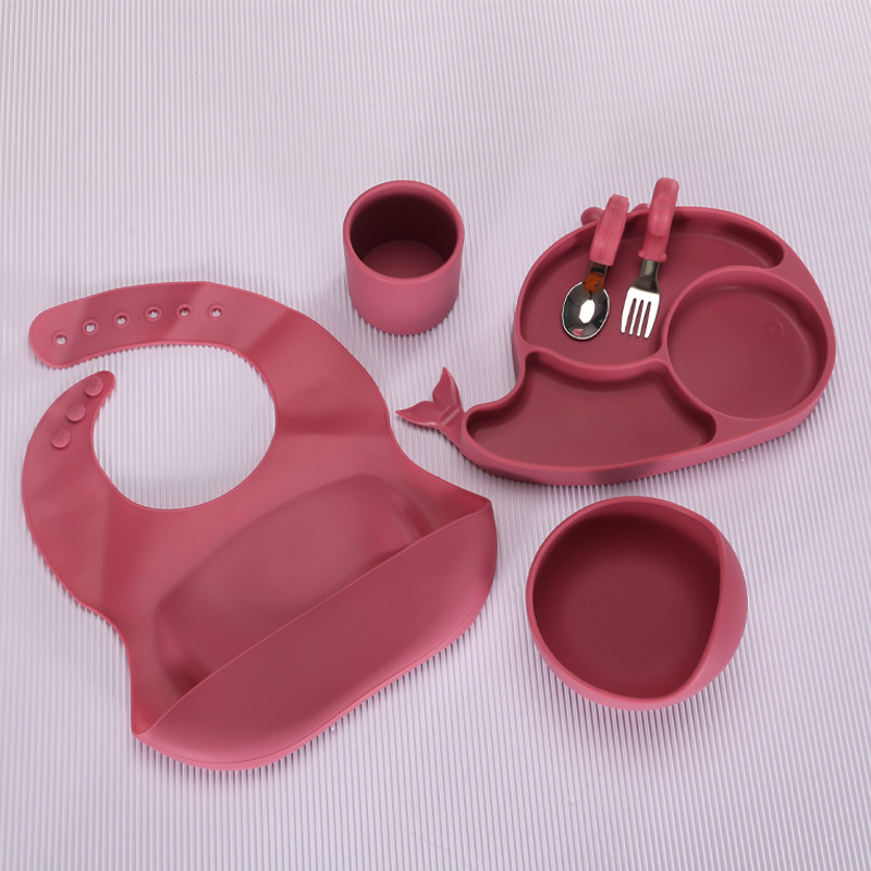 婴儿吸盘一体式学吃饭硅胶吸管碗勺套装宝宝硅胶餐盘分格盘卡通
