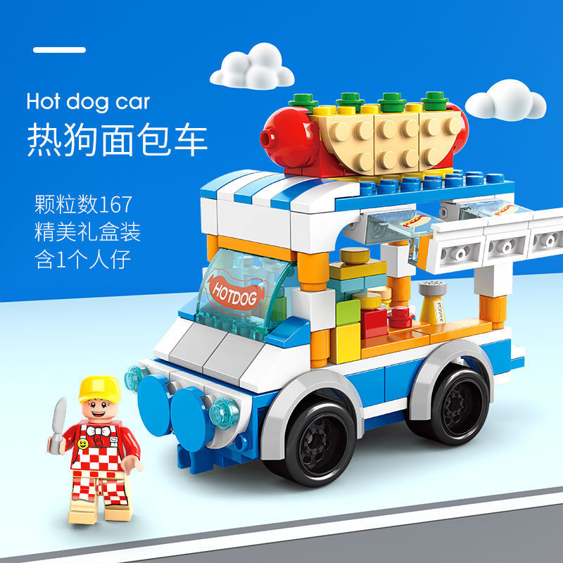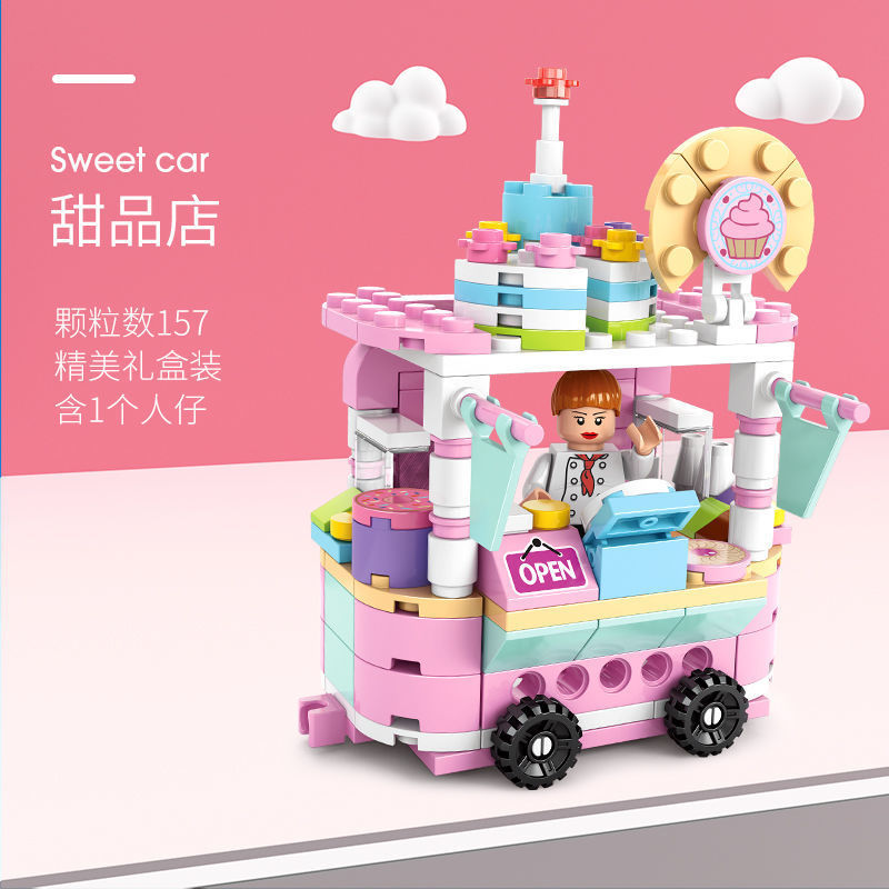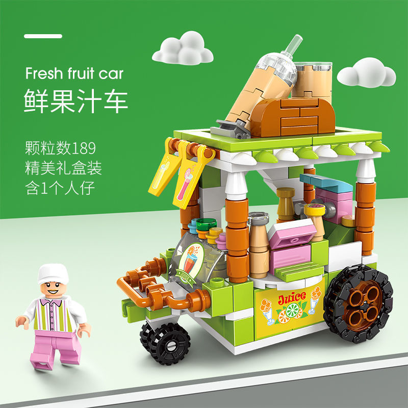 积木迷你街景城市商业街建筑模型儿童男女孩益智拼装地摊玩具拼图