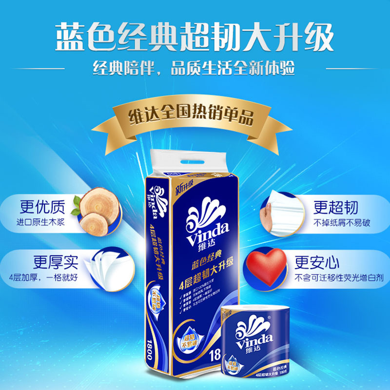 维达纸巾批发工厂蓝色经典卷筒纸四层加厚180g/卷*10卷/提卫生纸