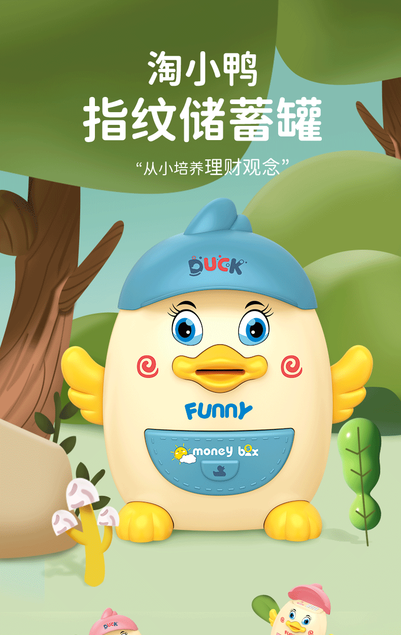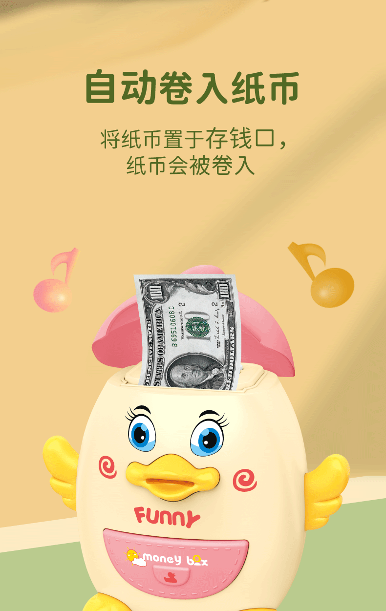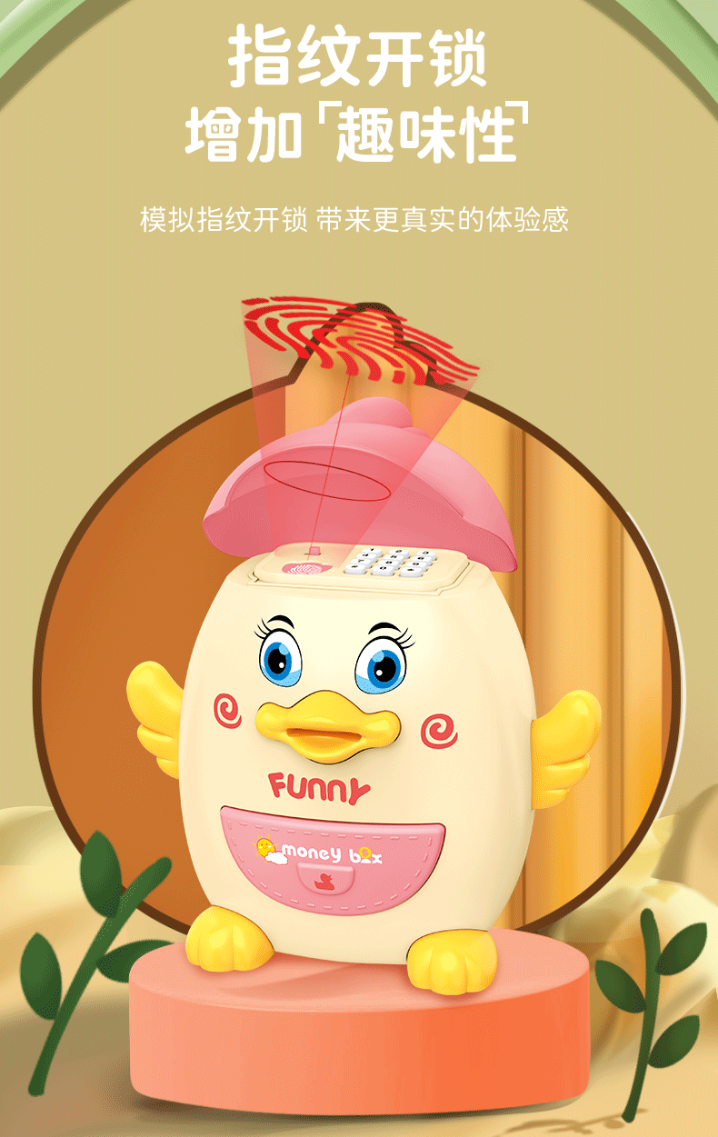 儿童淘小鸭存钱罐指纹解锁密码箱自动卷钱只进不出便宜人脸男女孩