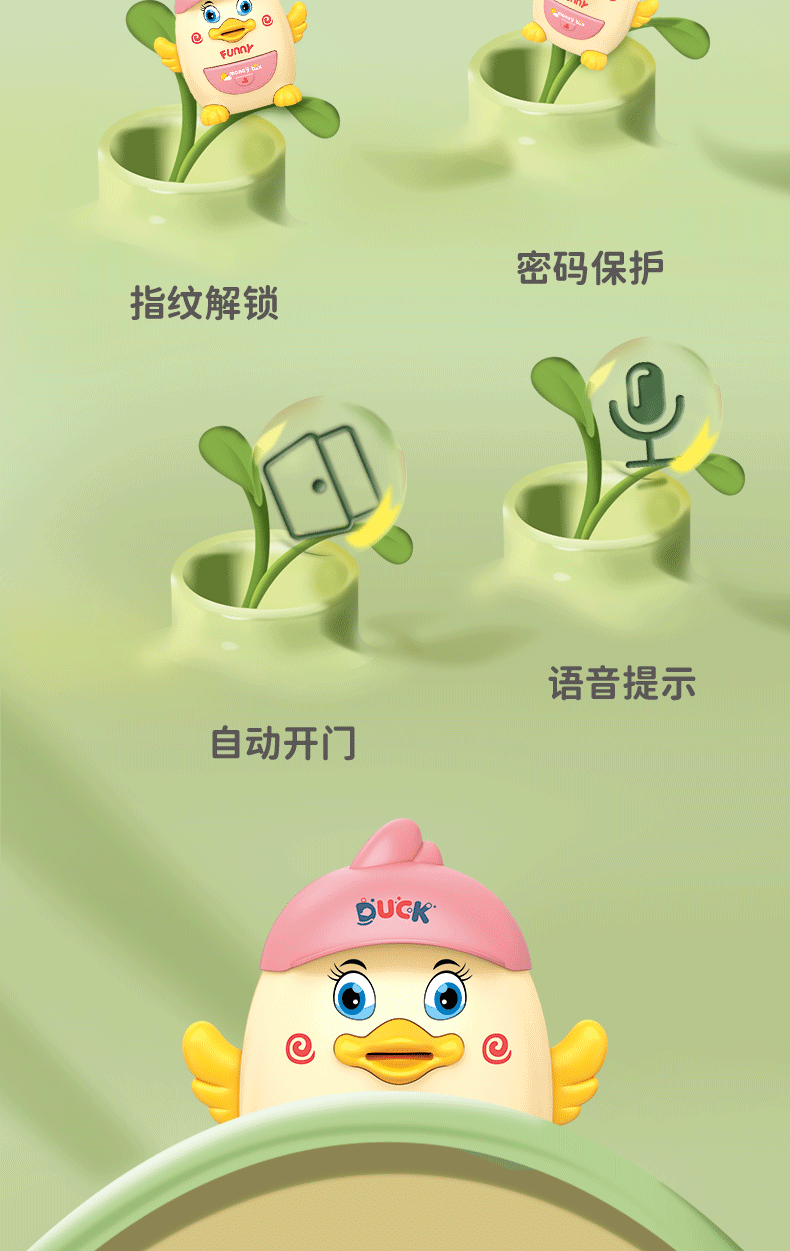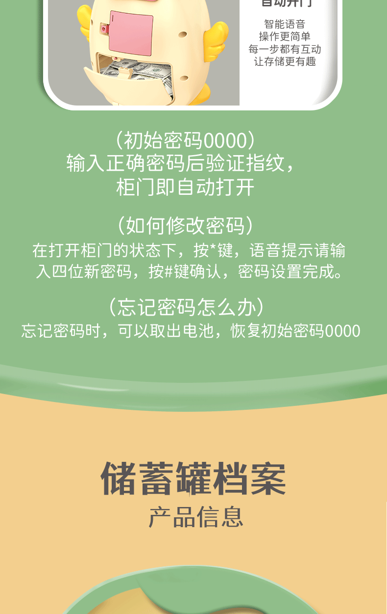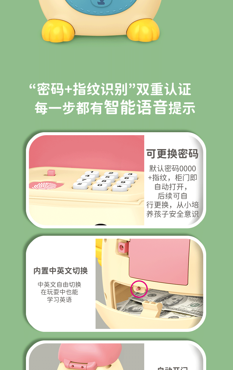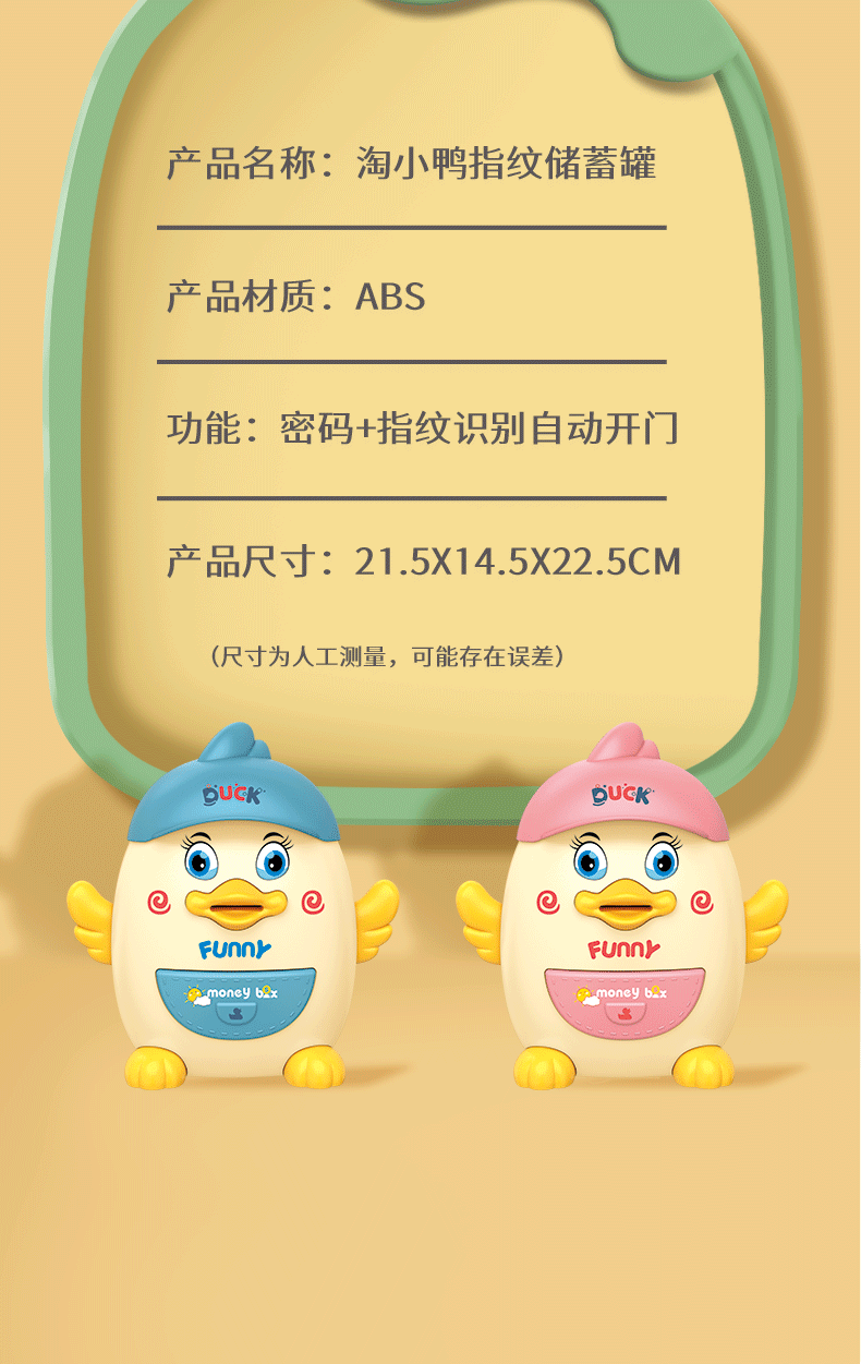 儿童淘小鸭存钱罐指纹解锁密码箱自动卷钱只进不出便宜人脸男女孩