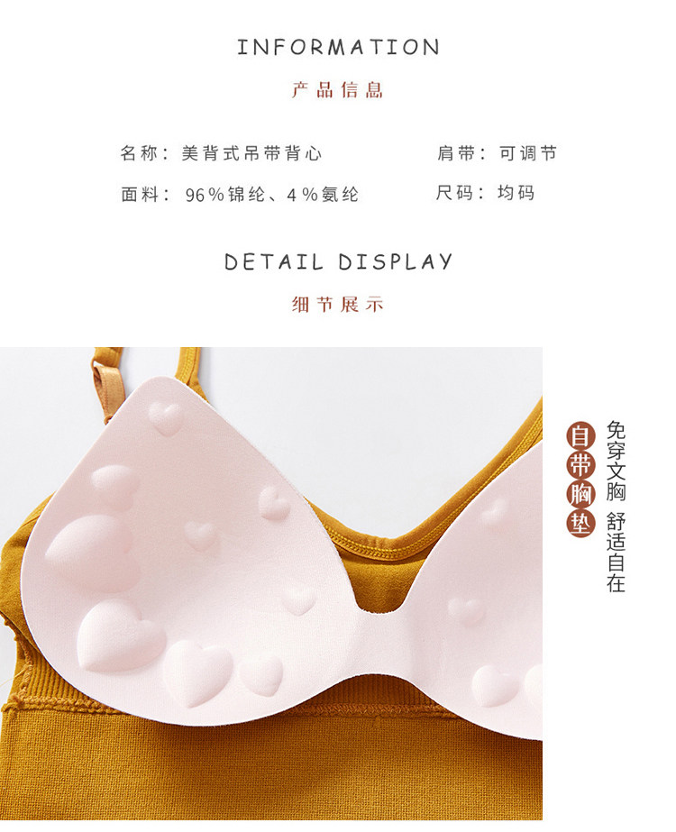 美背吊带背心女卡卡 一体网红爆款大U型外穿夏季薄款文胸抹胸内衣