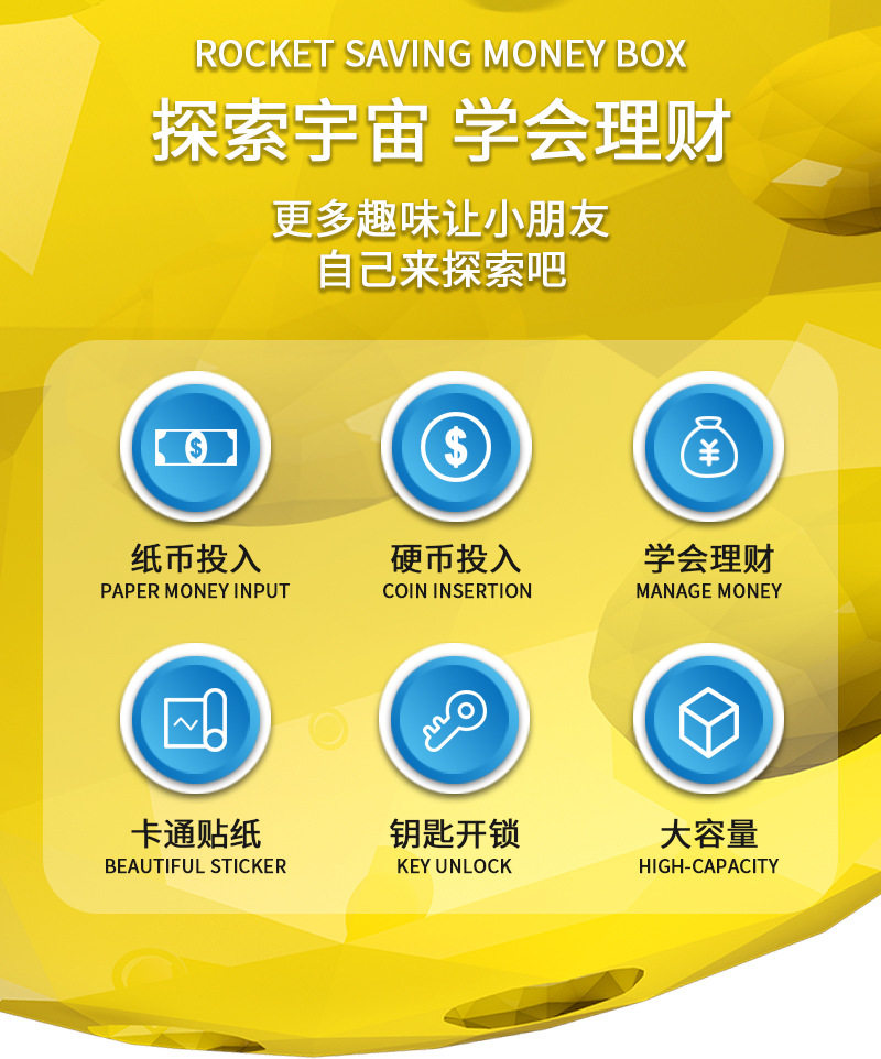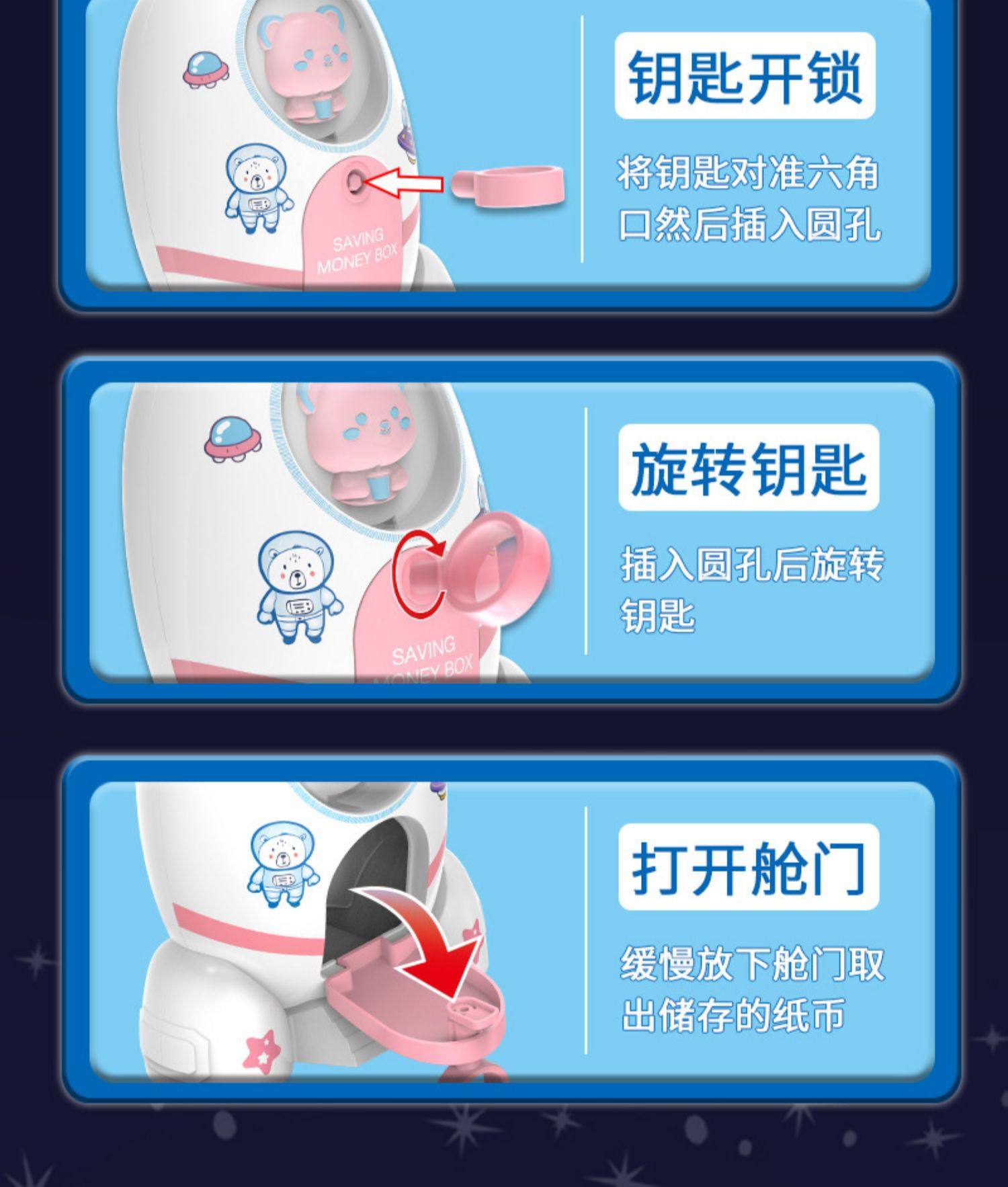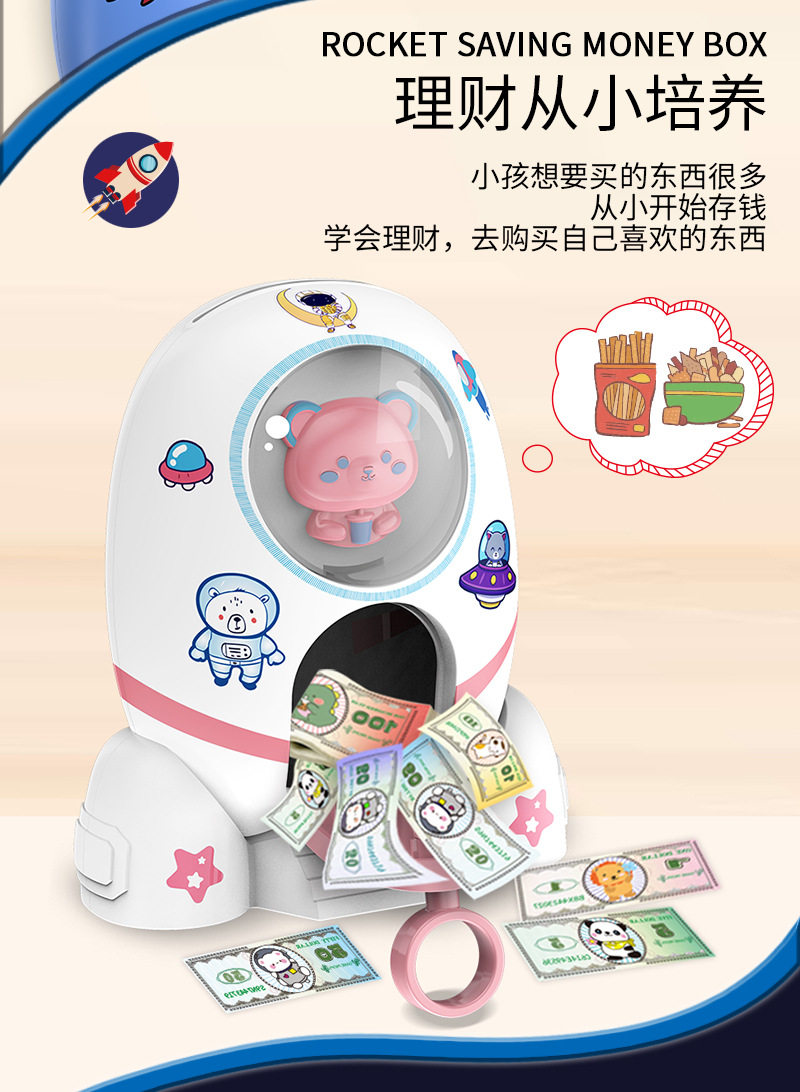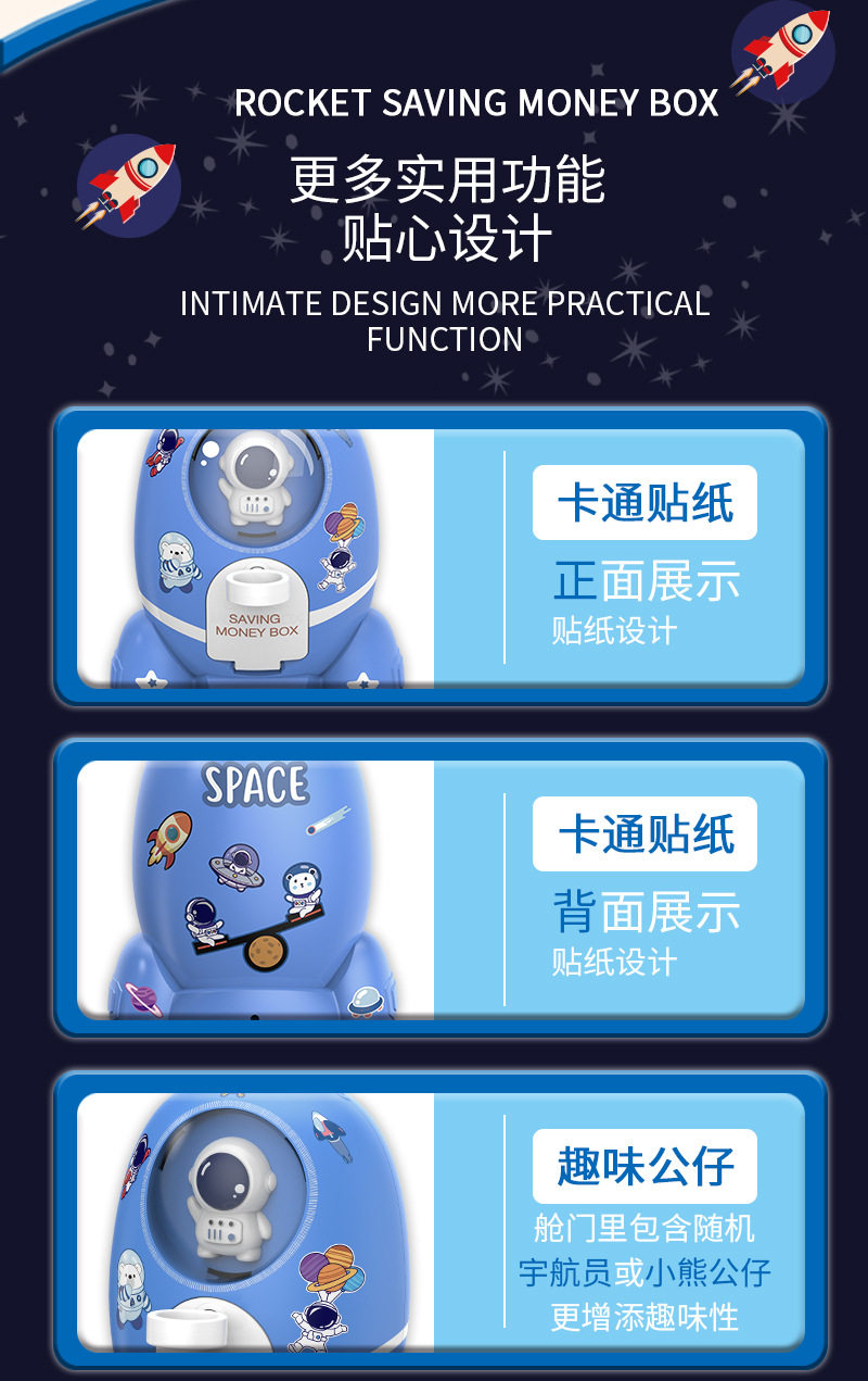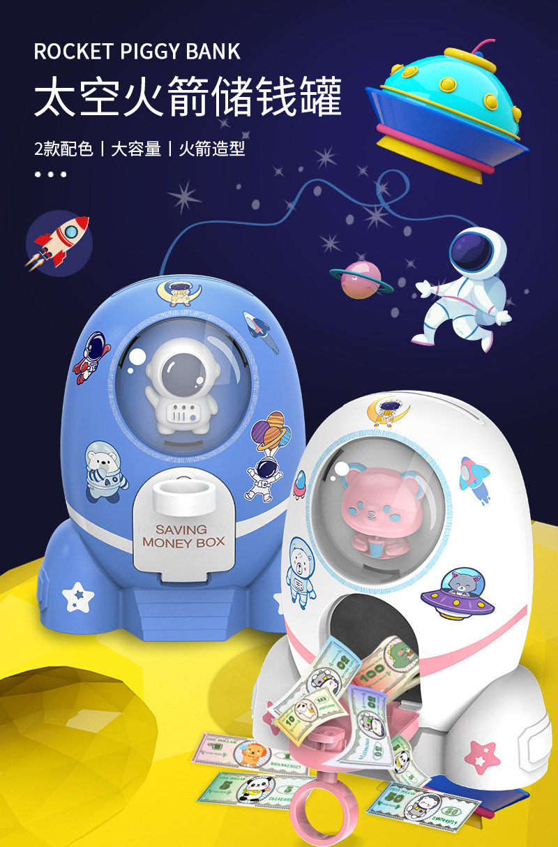 新款大号火箭存钱罐男女孩只进不出儿童密码太空储蓄钱箱生日礼物