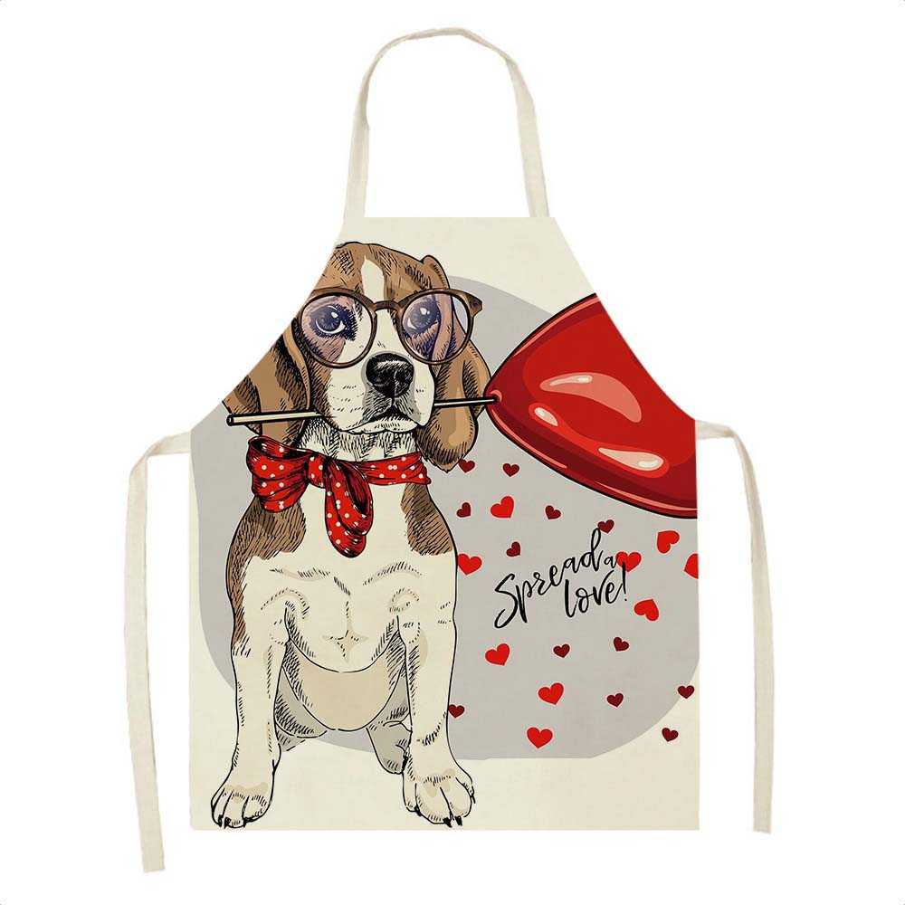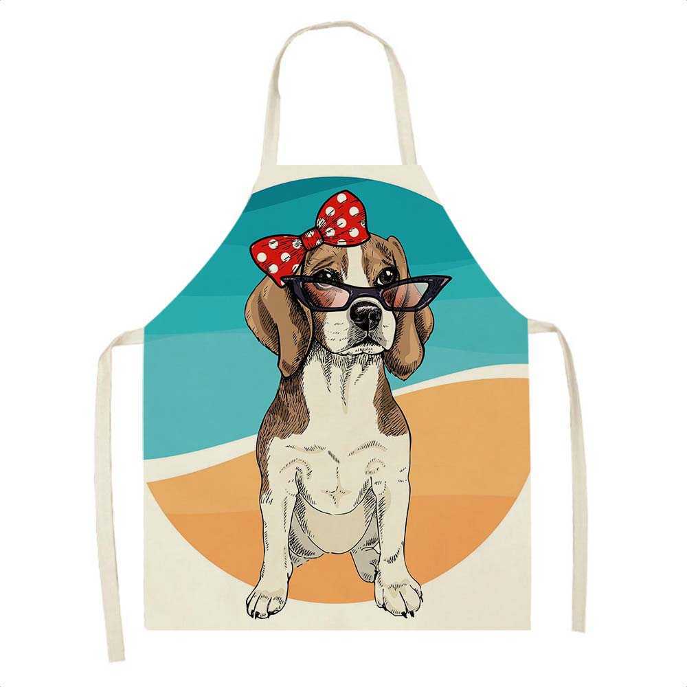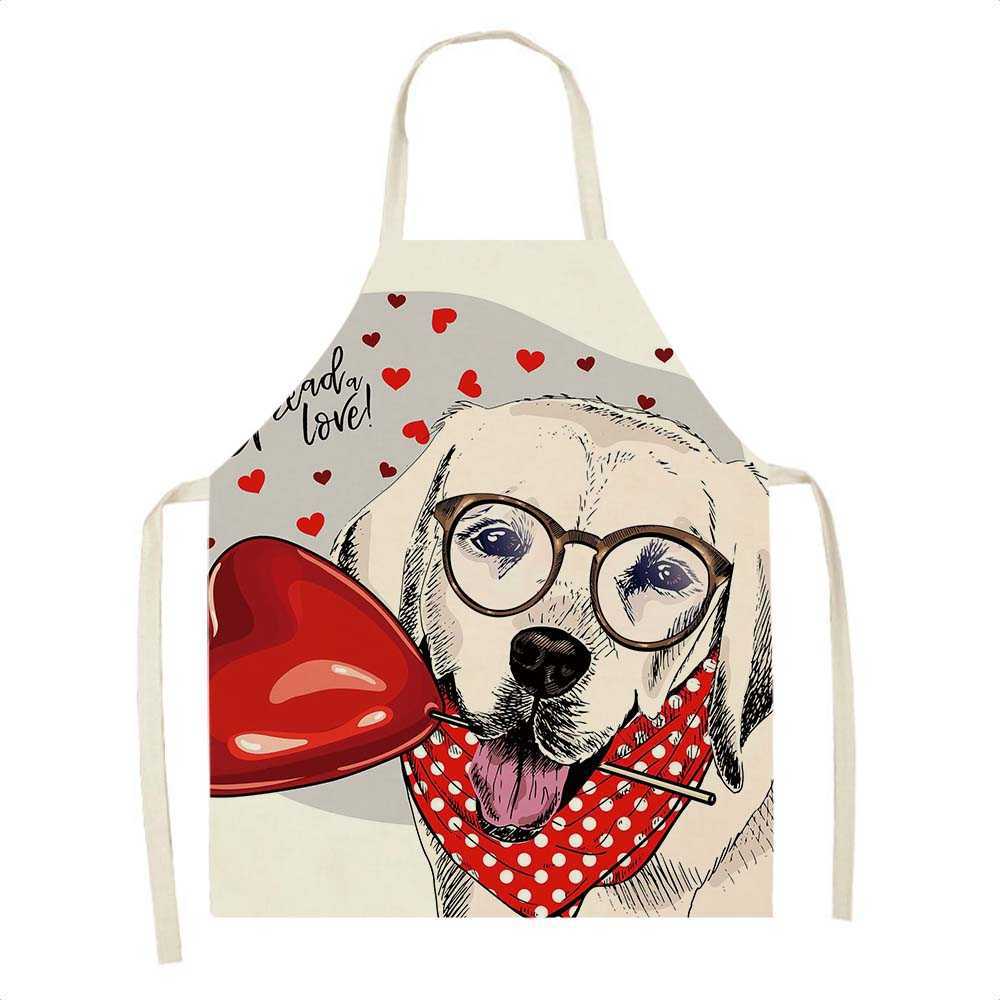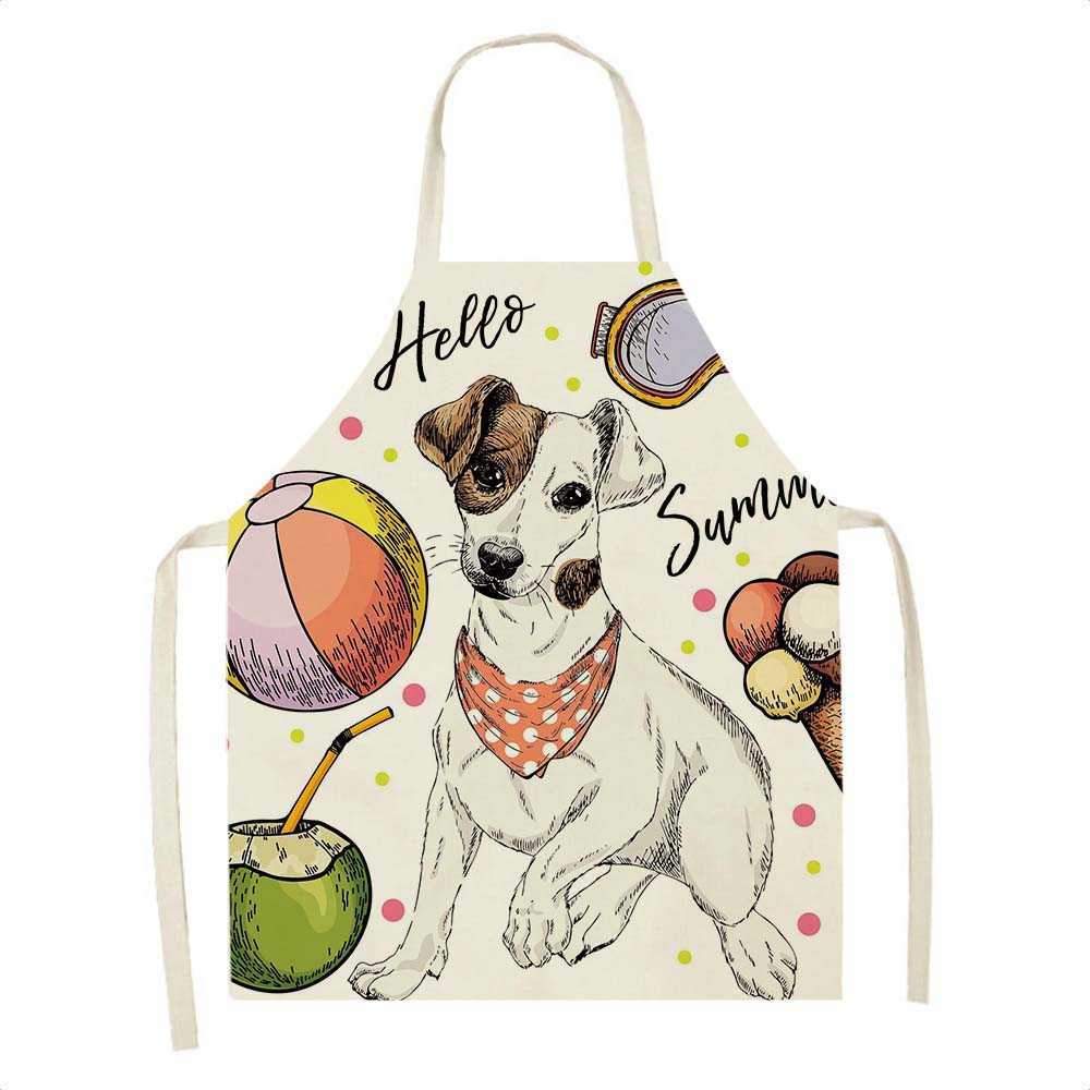速卖通热销卡通狗狗印花亚麻无袖围裙 时尚亲子防油防污罩衣代发